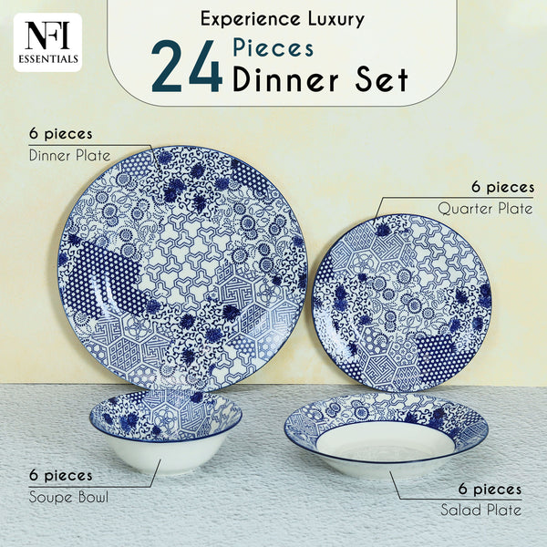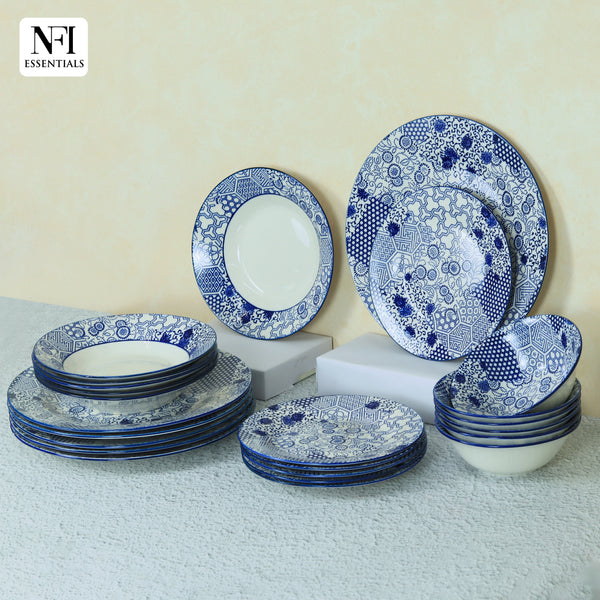 A dinner set is an essential component of any home and enhances the ambiance of the interior design. Dinner sets of one's choosing are served for special occasions as well as daily meals. Restaurant settings also provide careful consideration to the dinner set selection. There are a variety of dining set styles to fit every taste.There are numerous varieties to fit every taste, including melamine and ceramic. Savor your main courses with this exquisitely crafted dinner set from NFI Essentials. You can use these for six people at home, in the cafeteria at work, in restaurants, or as gifts for friends and family for important occasions.