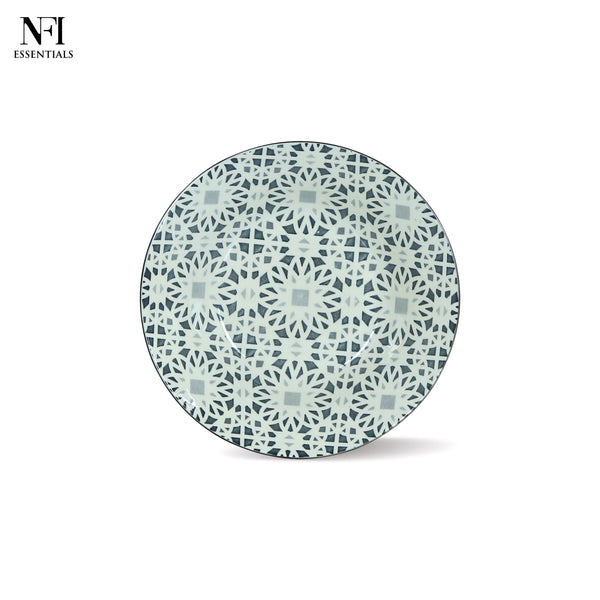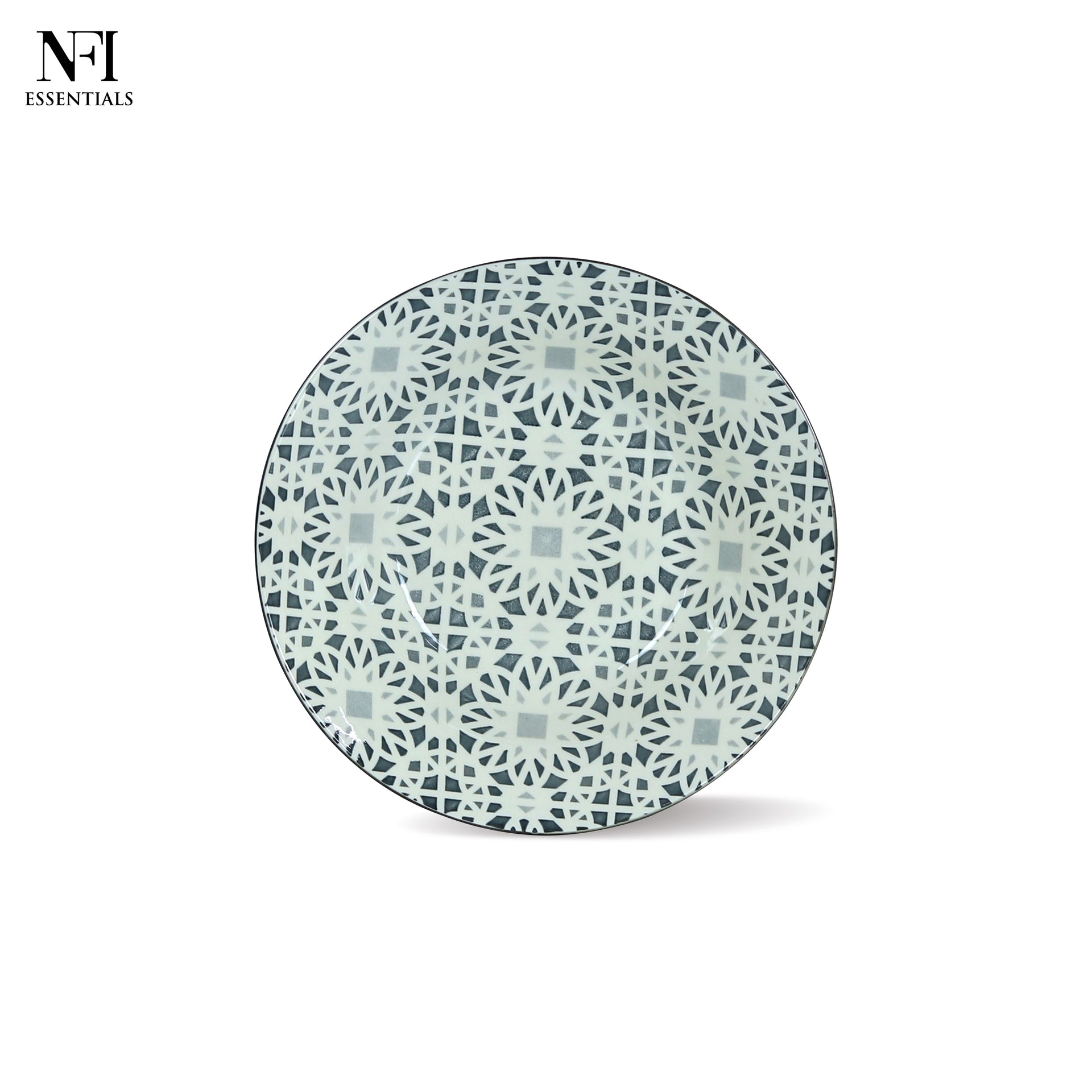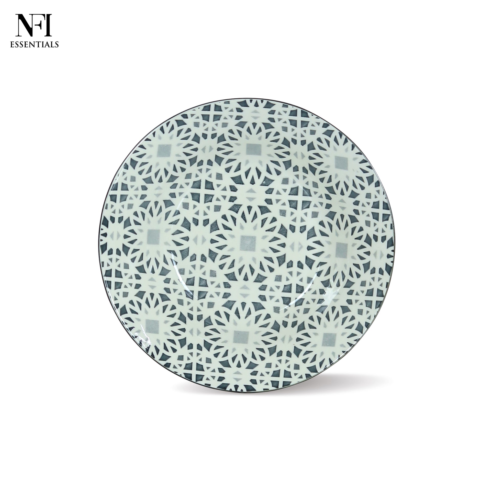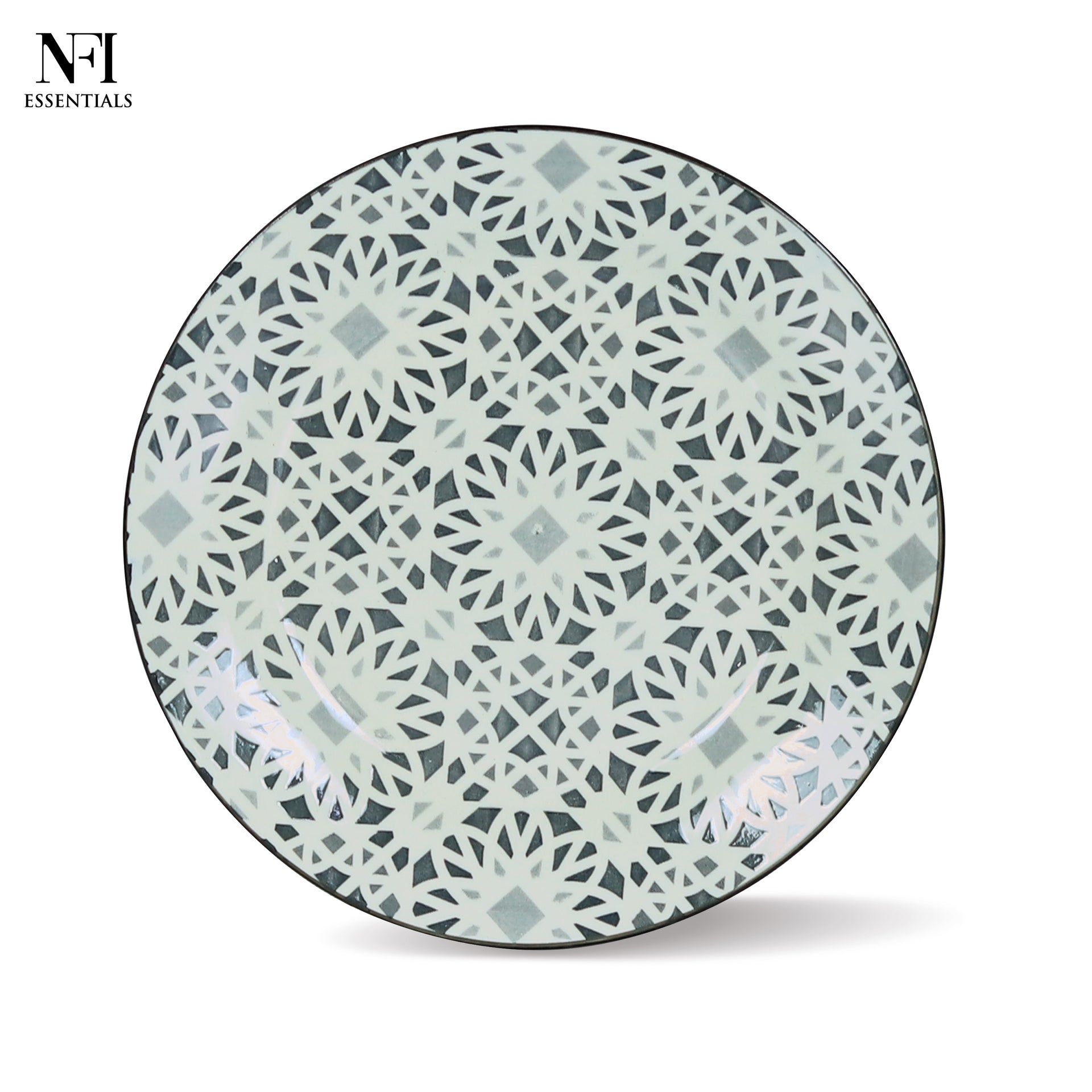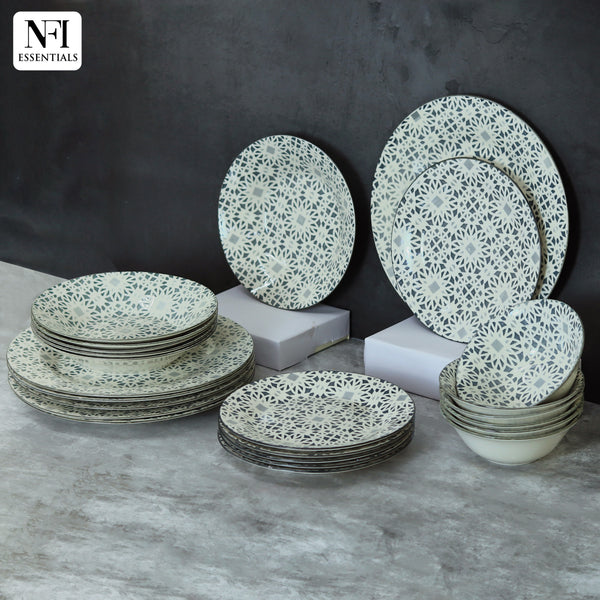 NFI essentials 24 pcs Ceramic Dinner Set for Dining Microwave & Dishwasher Safe Crockery Set Quality Porcelain Geometric Design 6 Dinner Plates, 6 Quarter Plate. 6 Salad Plate & 6 Set Of Bowls