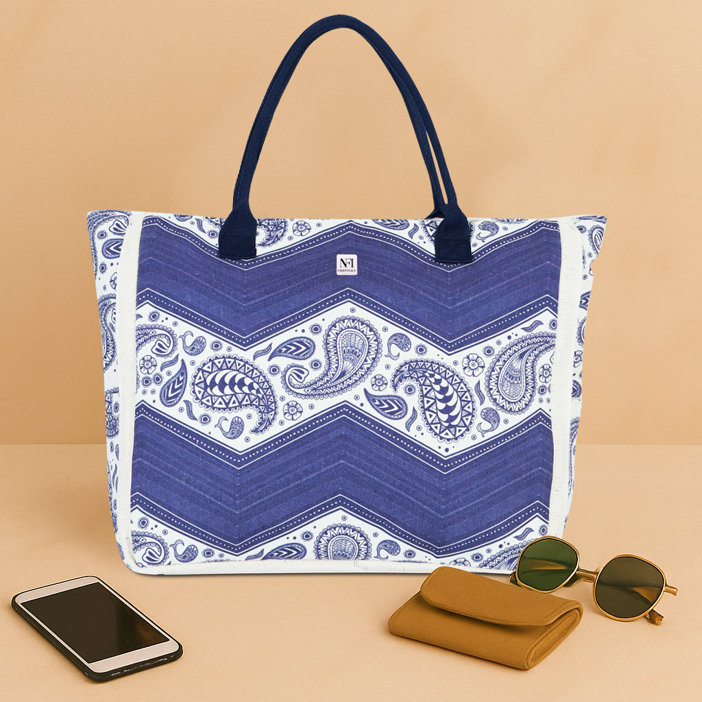 NFI essentials Aesthetic Printed Canvas HandBags for Women & Girls Hobo Bag, Tote Shopping Shoulder Totes Grocery Bags for Travel Stylish Ladies Multipurpose Purse