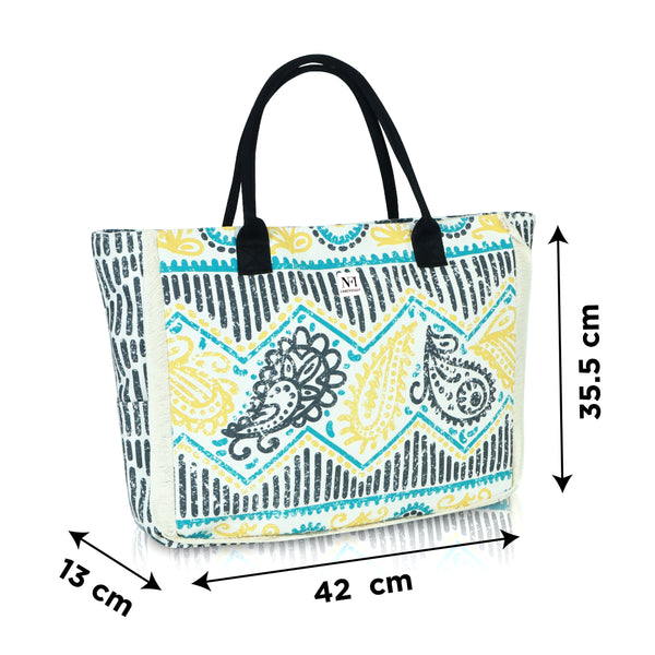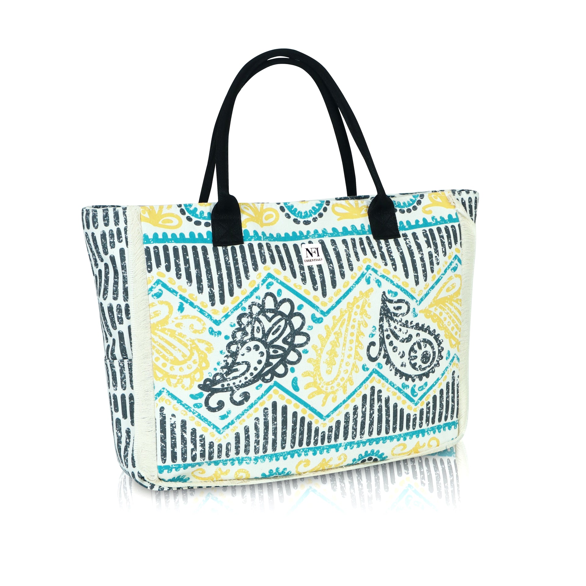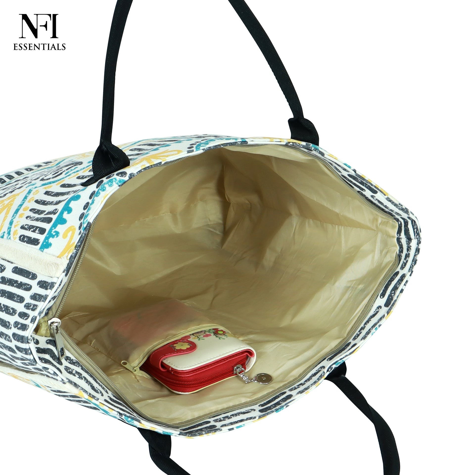 NFI essentials Aesthetic Printed Canvas HandBags for Women & Girls Hobo Bag, Tote Shopping Shoulder Totes Grocery Bags for Travel Stylish Ladies Multipurpose Purse