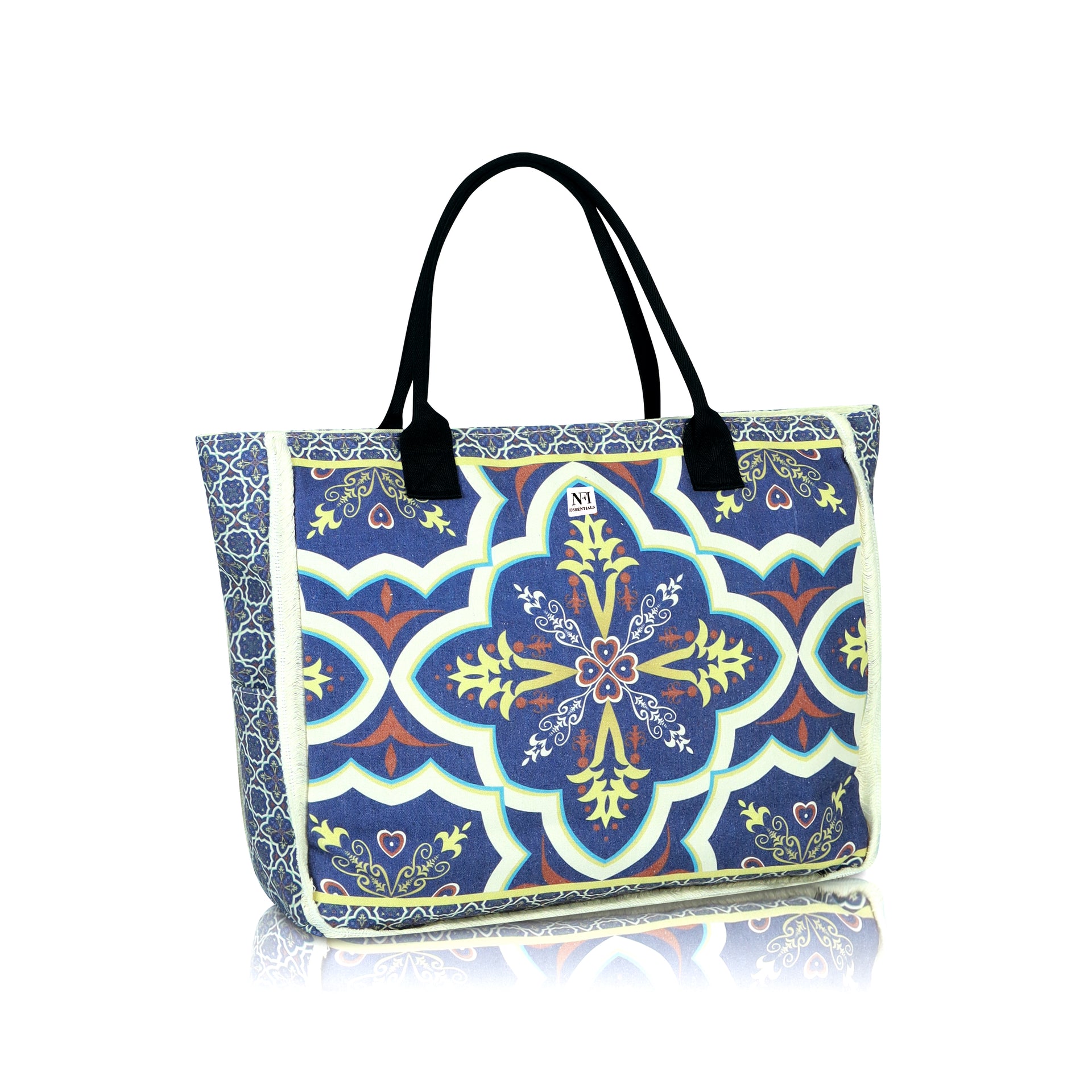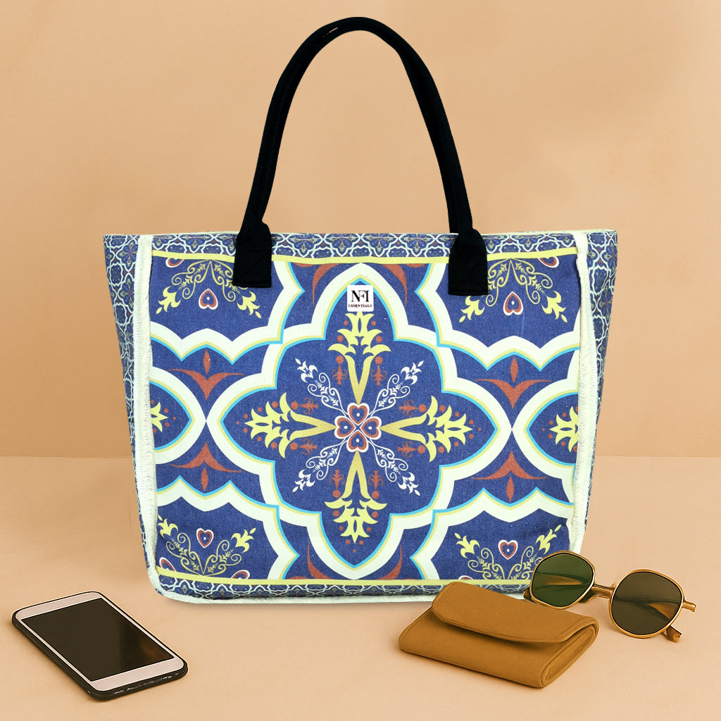 NFI essentials Aesthetic Printed Canvas HandBags for Women & Girls Hobo Bag, Tote Shopping Shoulder Totes Grocery Bags for Travel Stylish Ladies Multipurpose Purse