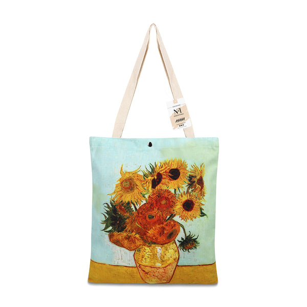 NFI essentials Canvas Printed Tote Bag for Women with Tich Button, Casual Handbag