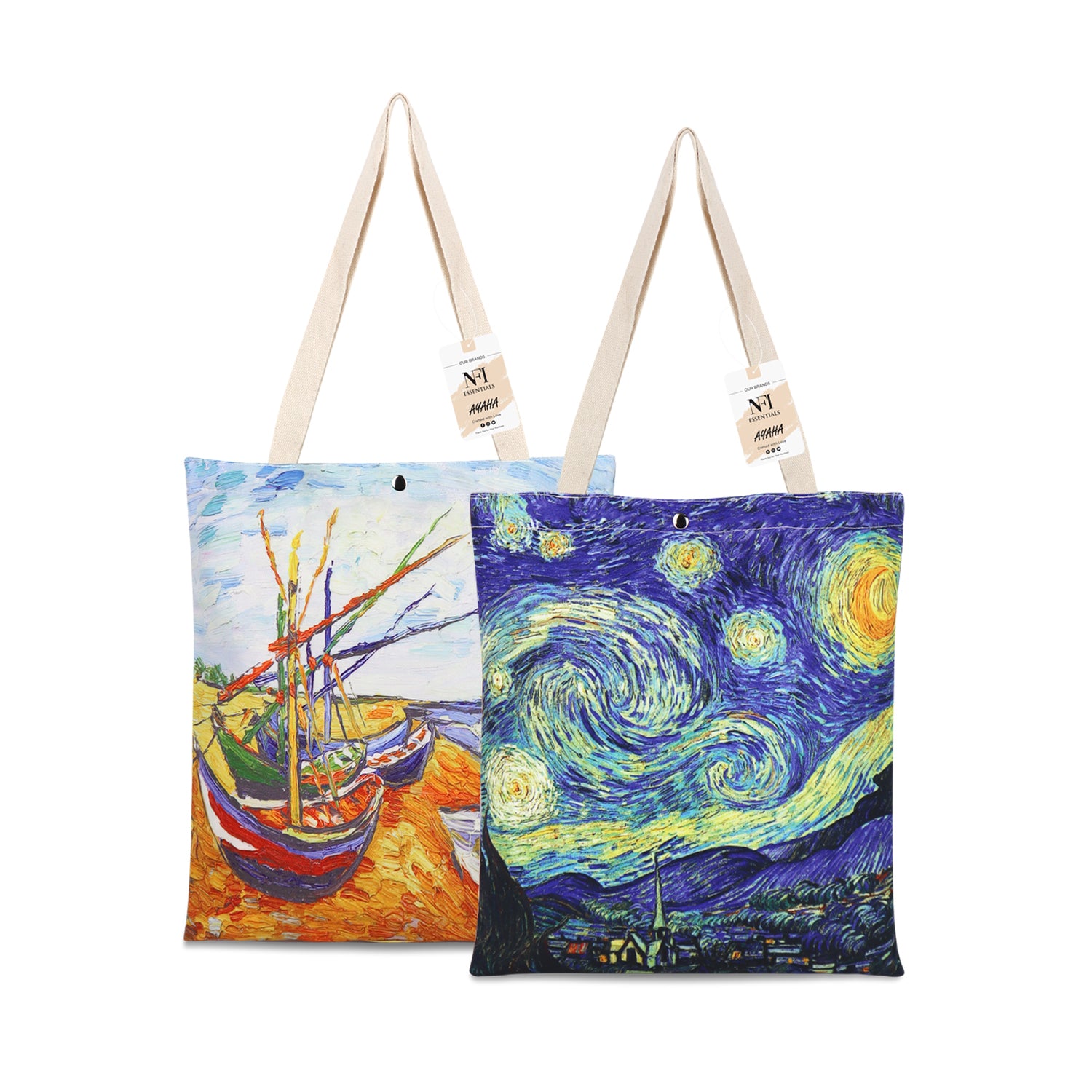 NFI essentials Canvas Printed Pack of 2 Tote Bag for Women with Tich Button, Casual Handbag Shopping, Tote Grocery Portable Bag Eco-friendly Hobo Bag, Travel.
