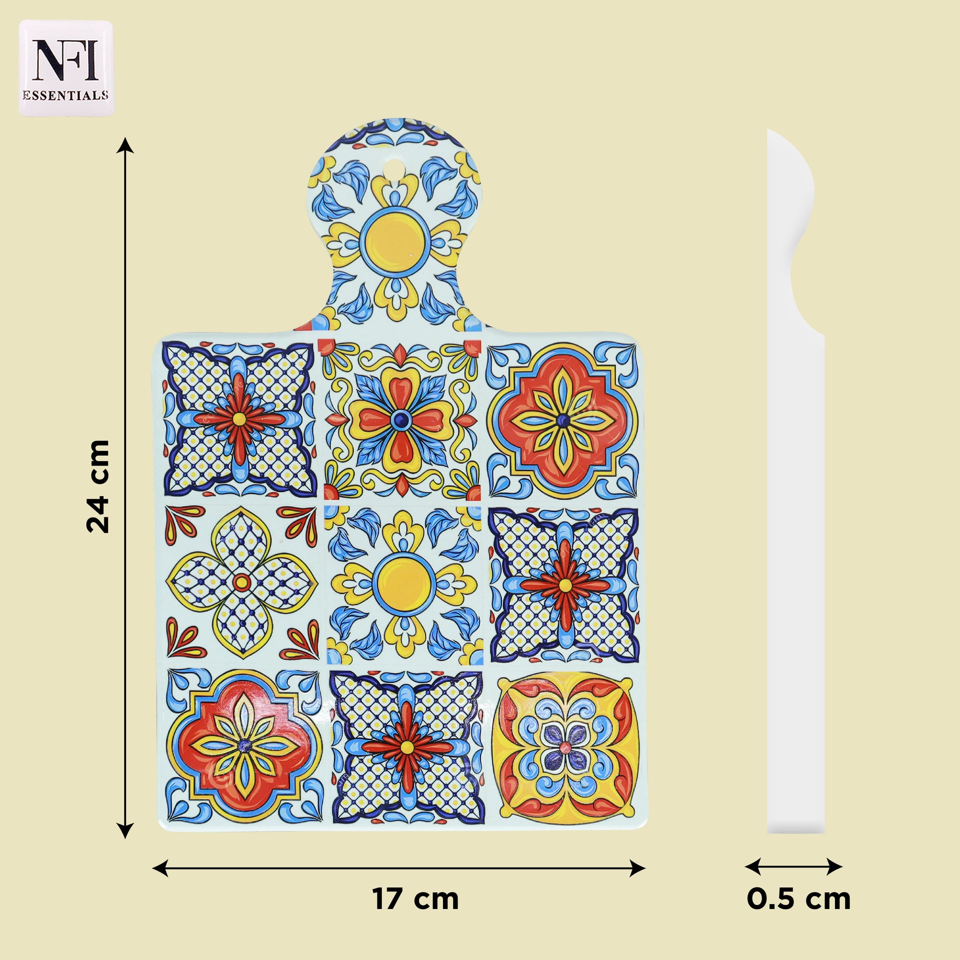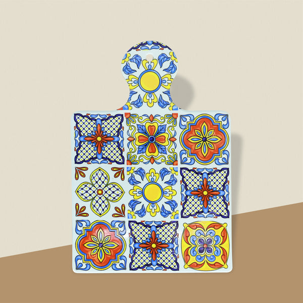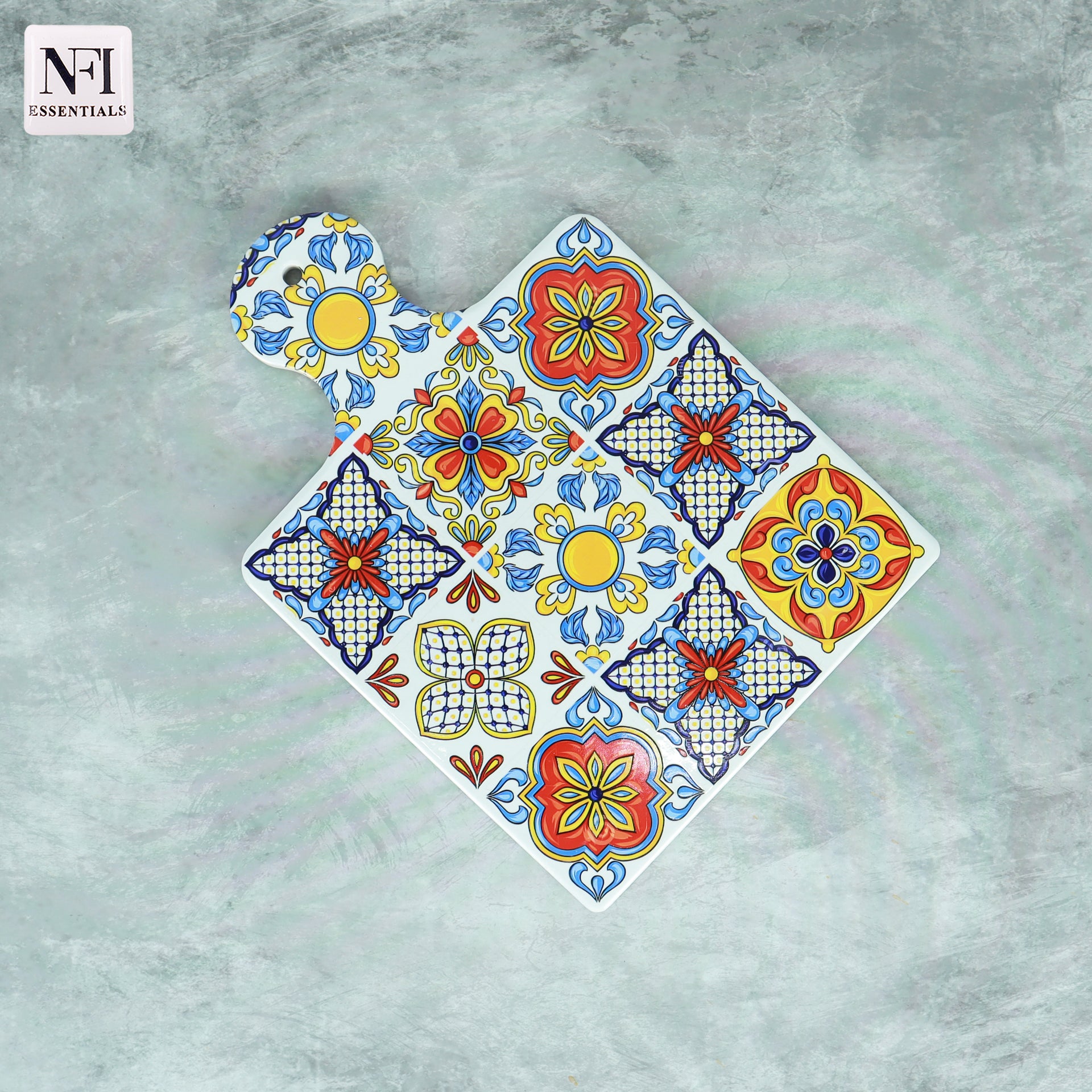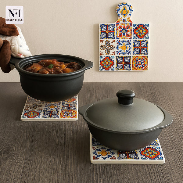 NFI essentials Ceramic Square Shape Table Trivet Coaster With Handle & Hanging loop Cork Base Perfect for Mugs, Cups, Teapots & Glasses, Premium Hot Coaster Heat-Resistant & Stylish (17*24 cm)