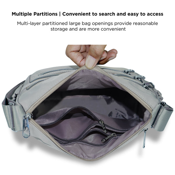 NFI essentials Crossbody Bag for Women, Multi-Layer Stylish Sling Bag for Girl, Nylon Shoulder Bag Purse for Ladies, Multi Pocket Travel Massenger Bag for Woman Latest