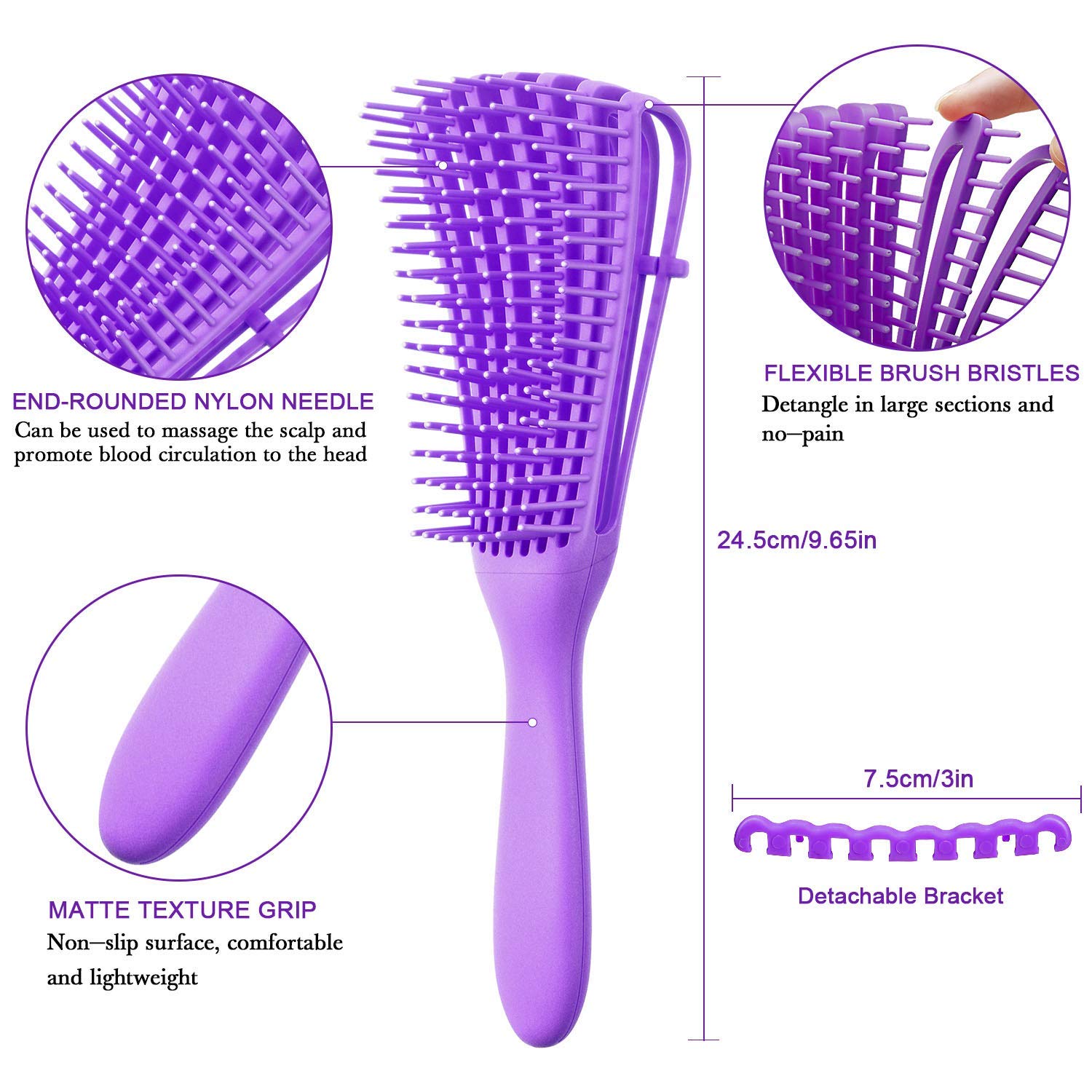 NFI essentials Detangler Hair Brush For Curly Hair Comb For Women Men & Kids, Comb For Curly Wavy Hair Pain Free Hair Detangling Brush, Curl Brush For Hair