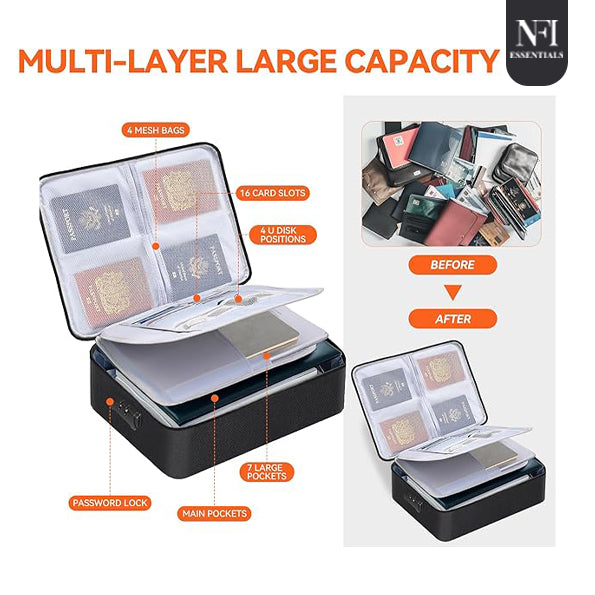 NFI essentials Document Organizer Bag with Lock Multilayer Travel Storage Organiser Pouch Waterproof File Folder Bag for Document & Certificates Safe Pouch Bag for Home Office