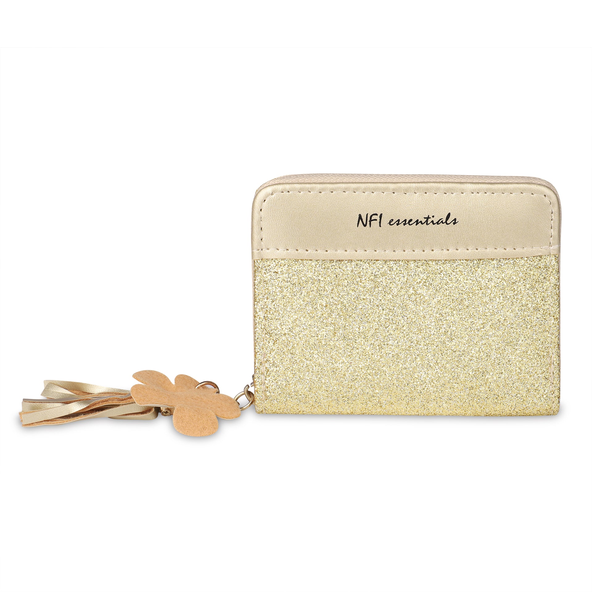 NFI essentials Fashion PU Leather Women's Mini Glitery Wallet Clutch Purse Card Holder Small Clutches for Women (Rose Gold)