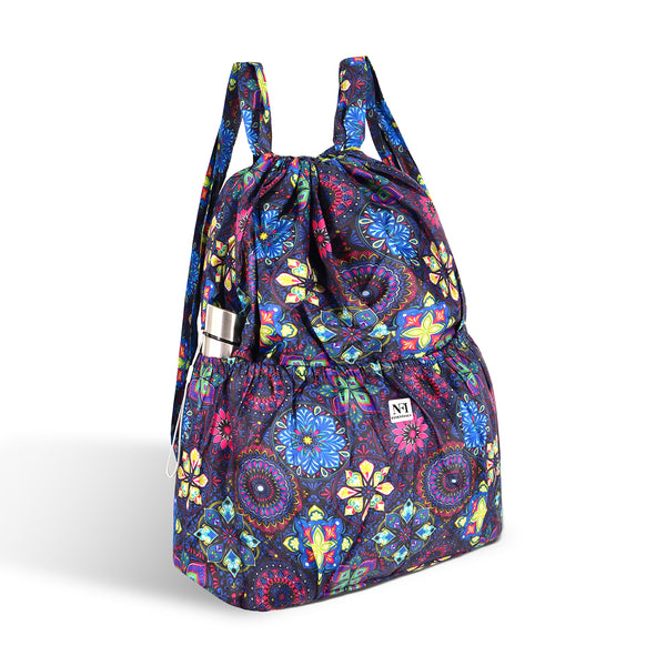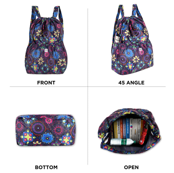NFI essentials Floral Print Drawstring Backpack for Women Foldable Sport String Bag Sackpack for Gym, College, Yoga, Shopping