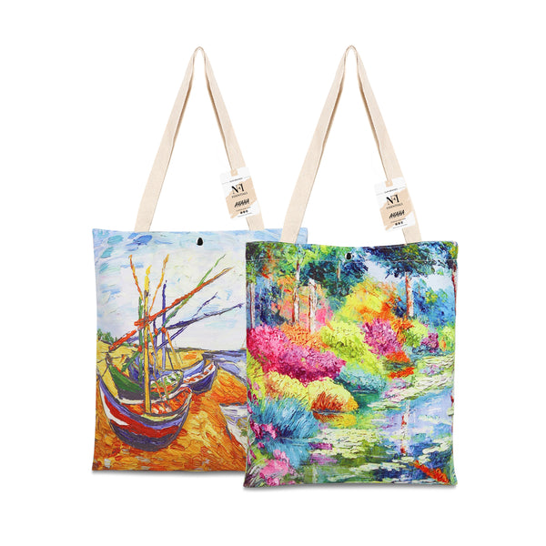 NFI essentials Canvas Printed Pack of 2 Tote Bag for Women with Tich Button, Casual Handbag Shopping, Tote Grocery Portable Bag Eco-friendly Hobo Bag, Travel.