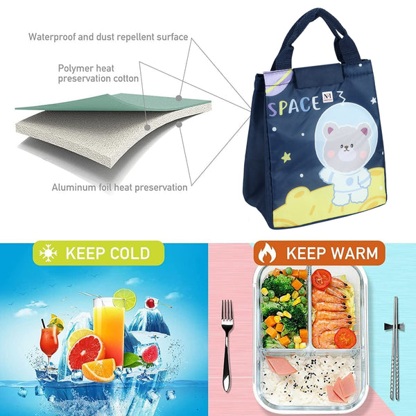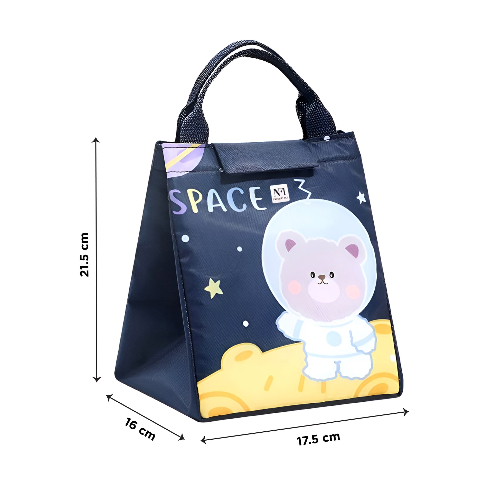 NFI essentials Cartoon Print Insulated Lunch Bag for Kids Large Tiffin Carry Bag Travel Lunch Box Organizer for School, Picnic Leak-proof Lunch Cooler Bag