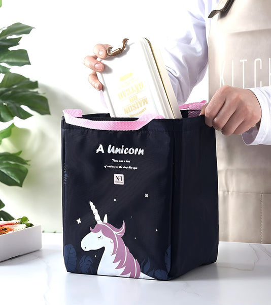 NFI essentials Cartoon Print Insulated Lunch Bag for Kids Large Tiffin Carry Bag Travel Lunch Box Organizer for School, Picnic Leak-proof Lunch Cooler Bag