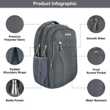 This backpack is made in 'INDIA' has features of 3 large zippered compartments, 1 padded compartment for Laptop, 1 vertical long zip pocket at front, 1 Anti - Theft Pocket-Hidden storage pocket for important documents, 1 water bottle & 1 umbrella pocket. This unisex backpack is suitable for casual usage, school, college, travel, etc. Indeed a perfect all-rounder backpack. The back of the backpack are fully padded for cushioning. It has padded section for laptop, tablets, etc. along with space for carrying papers, files, books, cloths, etc. Enough space to keep all your stuff. It has provision for holding bottles/umbrella and thick and well padded shoulder straps makes the backpack feel lighter while carrying. Adjustable shoulder straps relieve the stress on your shoulders and gives your back comfort and a very good support. This backpack is easy to carry whether you're toting it through the airport, use for short hikes, trips, picnic, hitting the gym, exploring a new city or daily use. Suitable for working professionals, college and school. This laptop bag can be used by everyone.