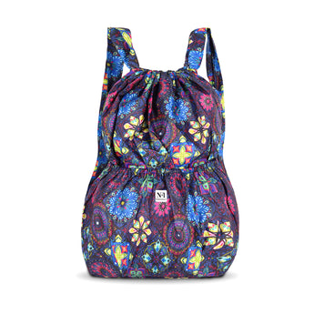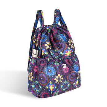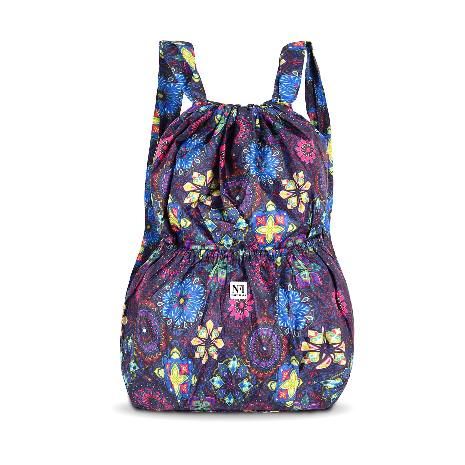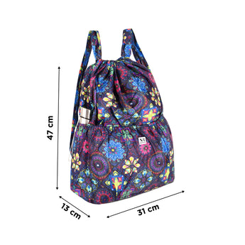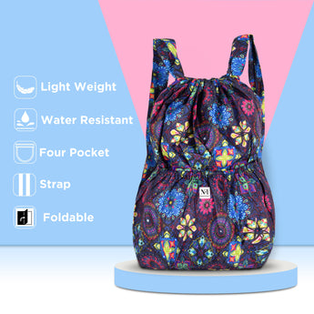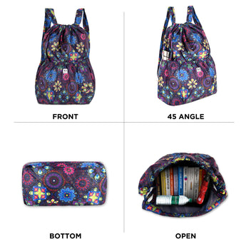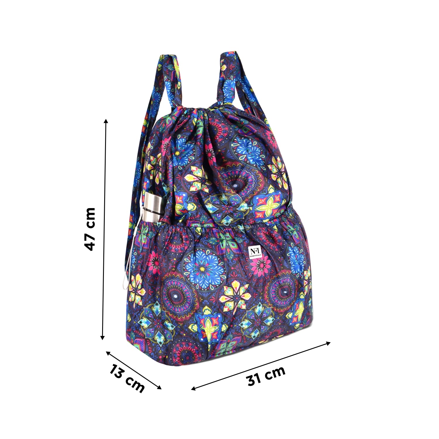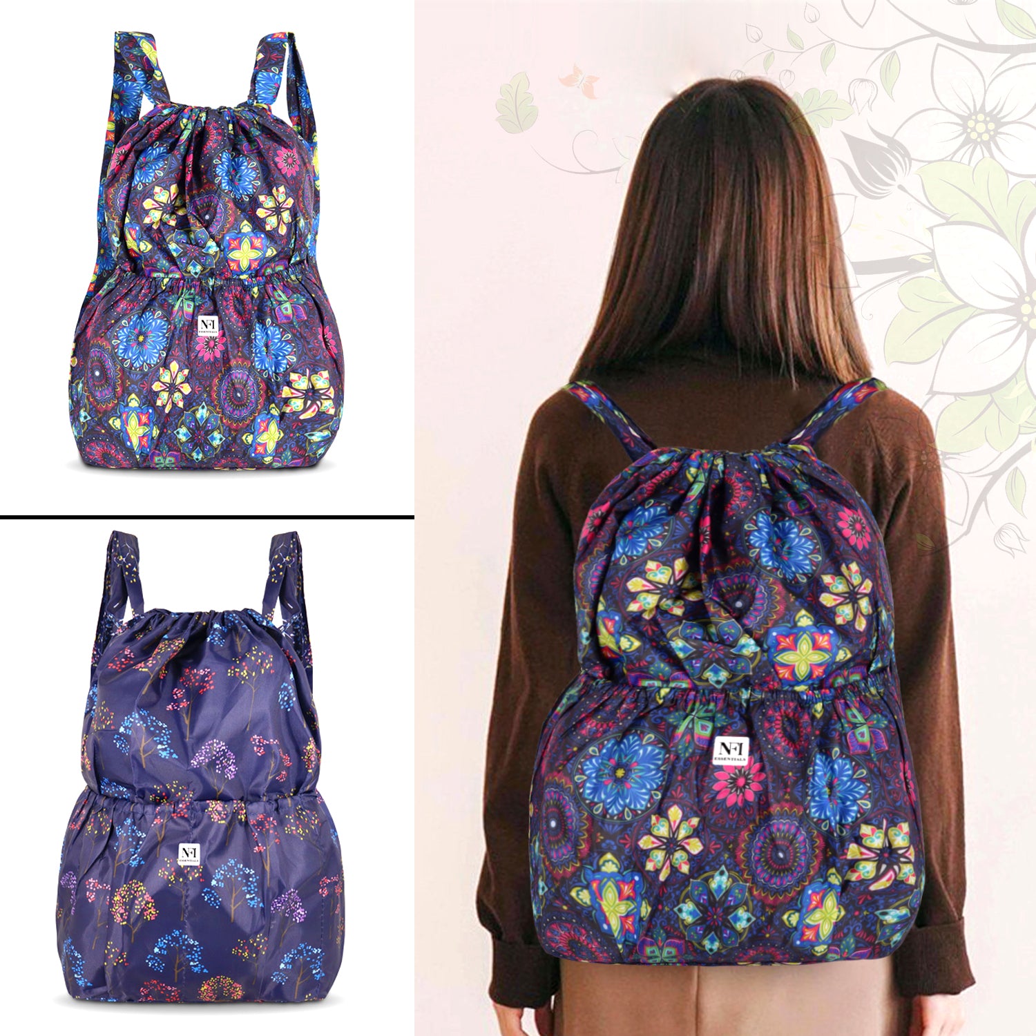 NFI essentials Floral Print Drawstring Backpack for Women Foldable Sport String Bag Sackpack for Gym, College, Yoga, Shopping