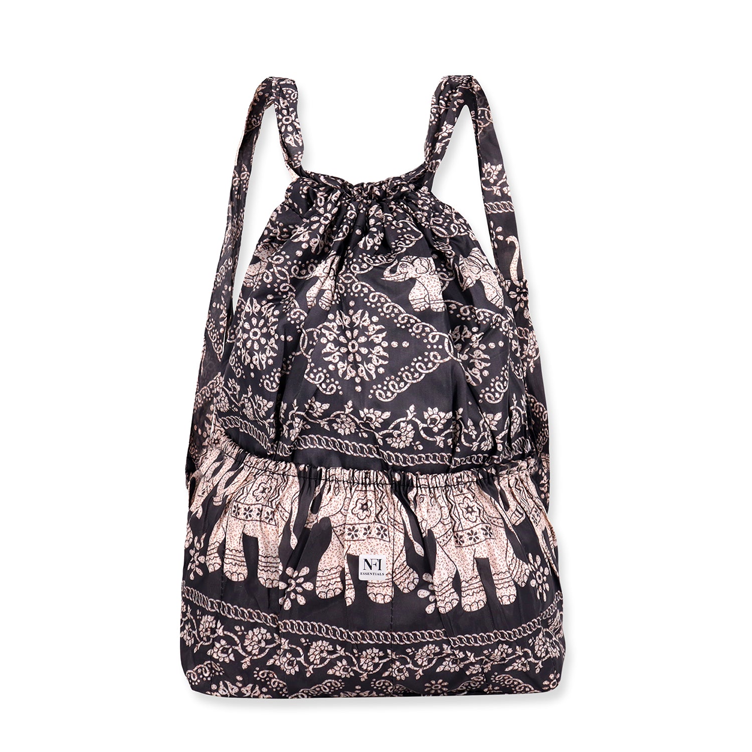 NFI essentials Floral Print Drawstring Backpack for Women Foldable Sport String Bag Sackpack Nylon for Gym, College, Yoga, Shopping