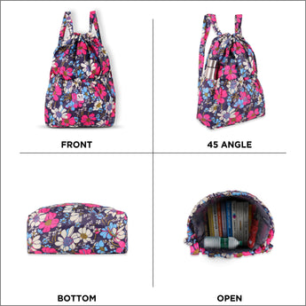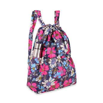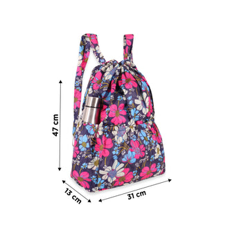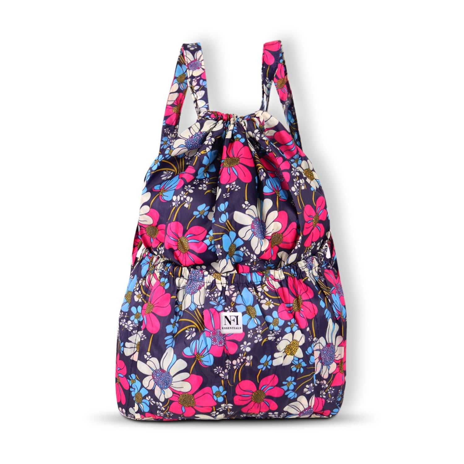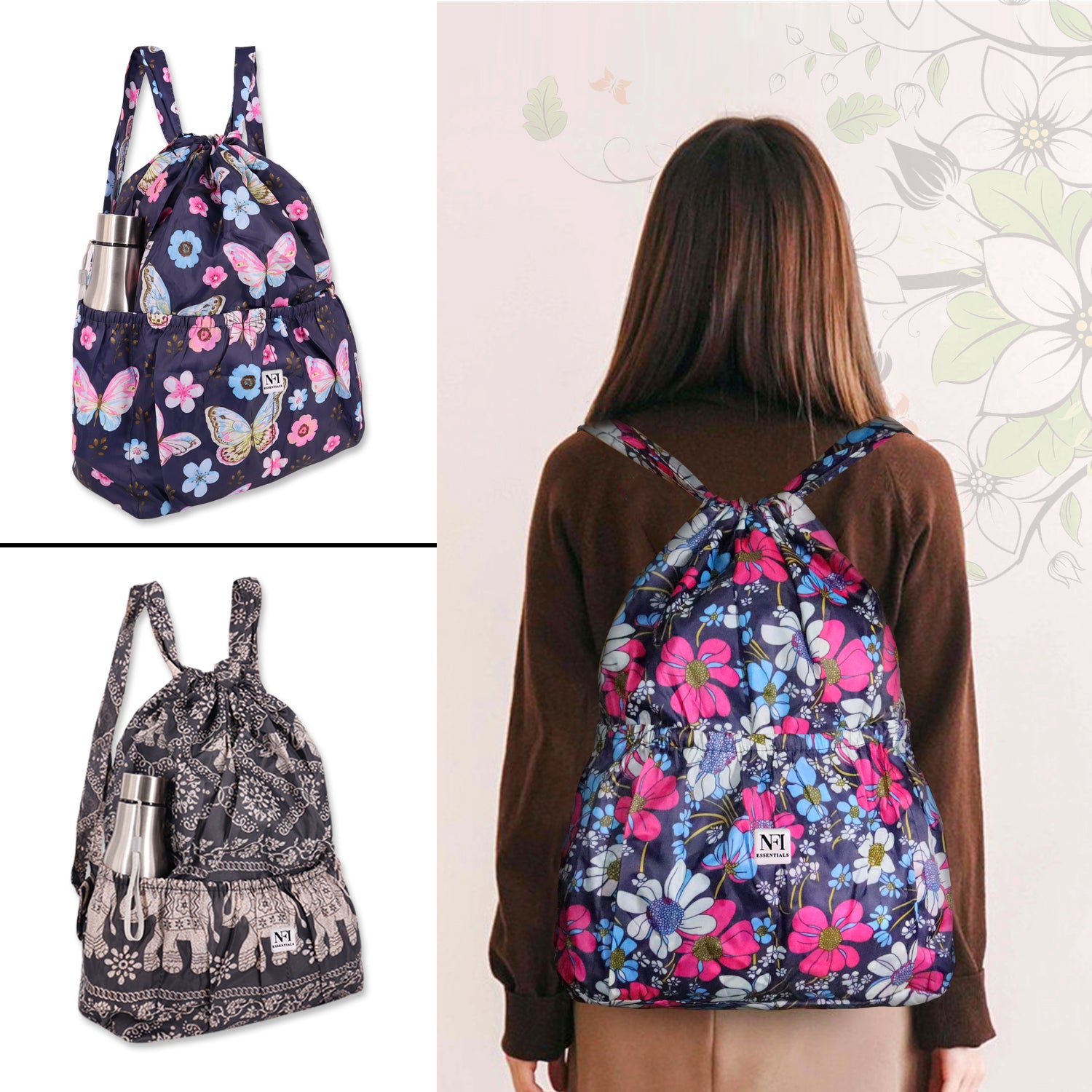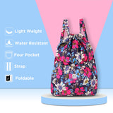 NFI essentials Floral Print Drawstring Backpack for Women Foldable Sport String Bag Sackpack Nylon for Gym, College, Yoga, Shopping