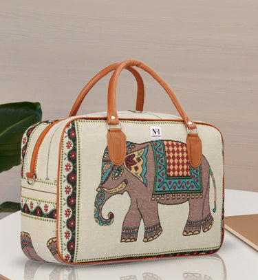 NFI essentials Elephant Print Canvas Duffle Travel Bag