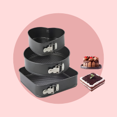 NFI Essentials Set of 3 Cake Baking Ingredients Springform Cake Pan Tin Baking Mold with Non-stick Removable Bottom Round, Square, and Heart-Shaped Cake Pans