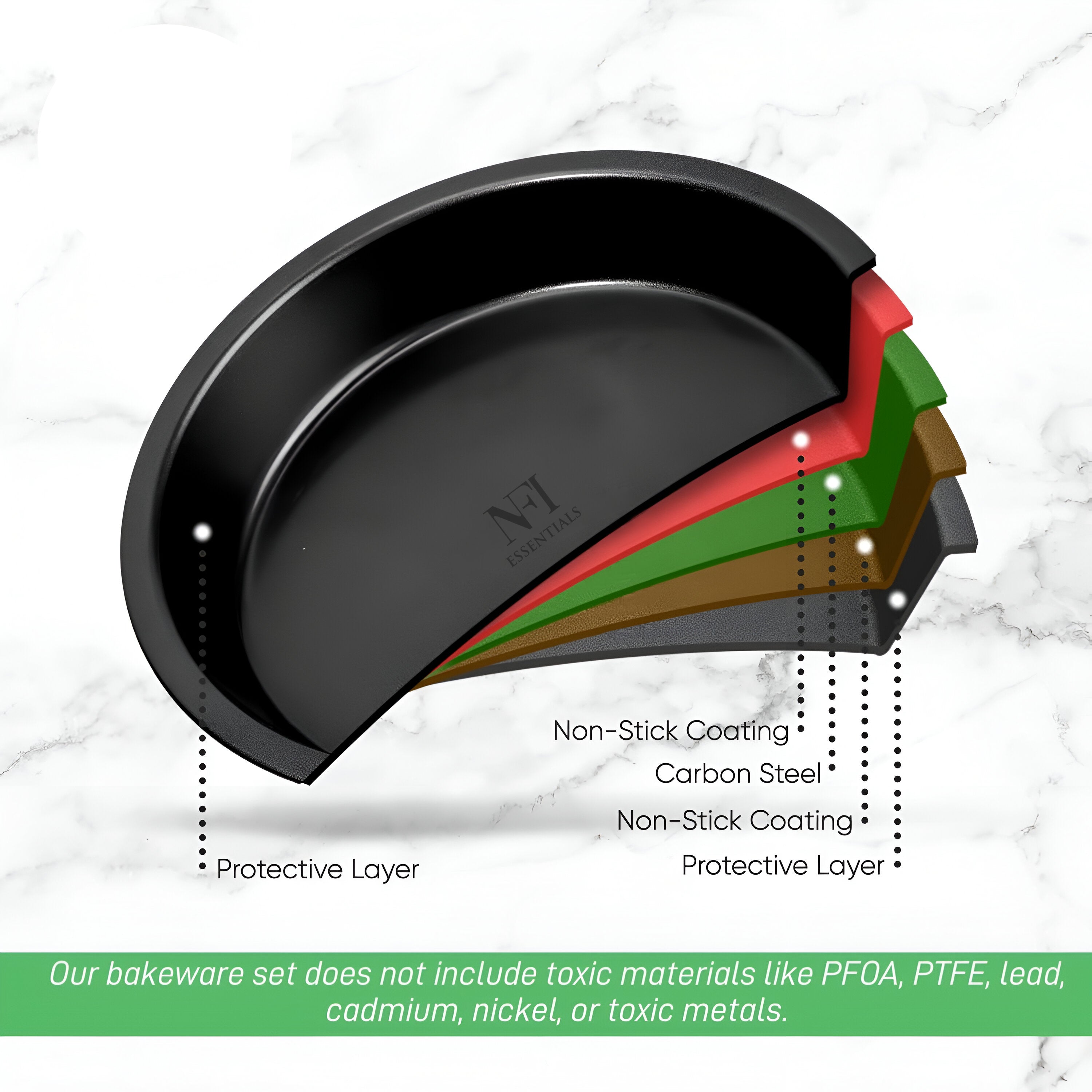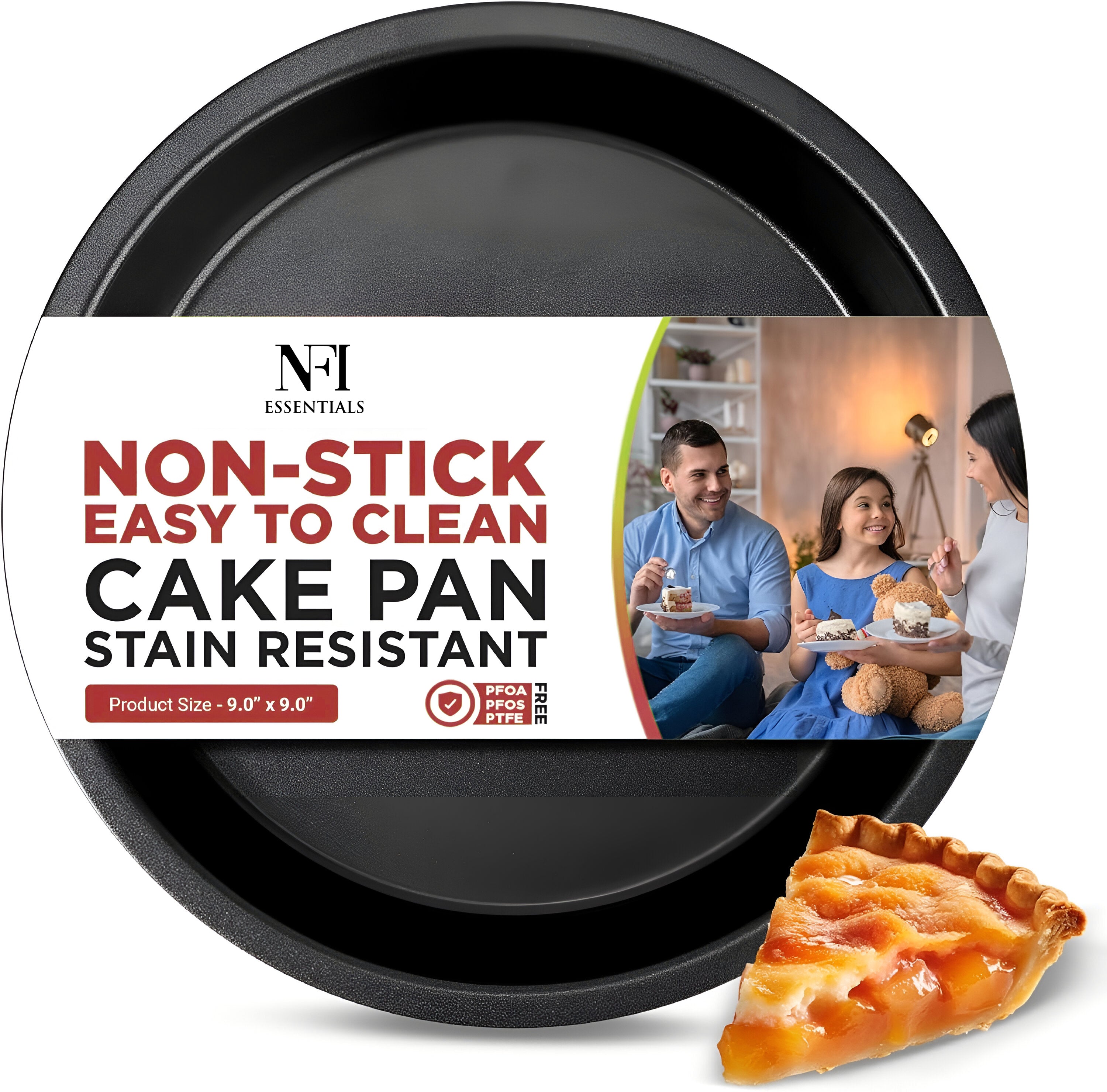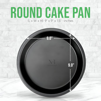 NFI Essentials Nonstick Round Cake Baking Pan for Homemade Bakeware for Cakes,layered cakes, and deep-dish pizzas. & More Teflon Coating bakeware cake pan (9 Inch)