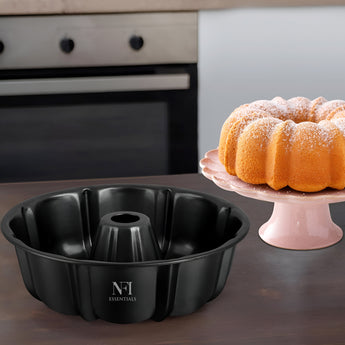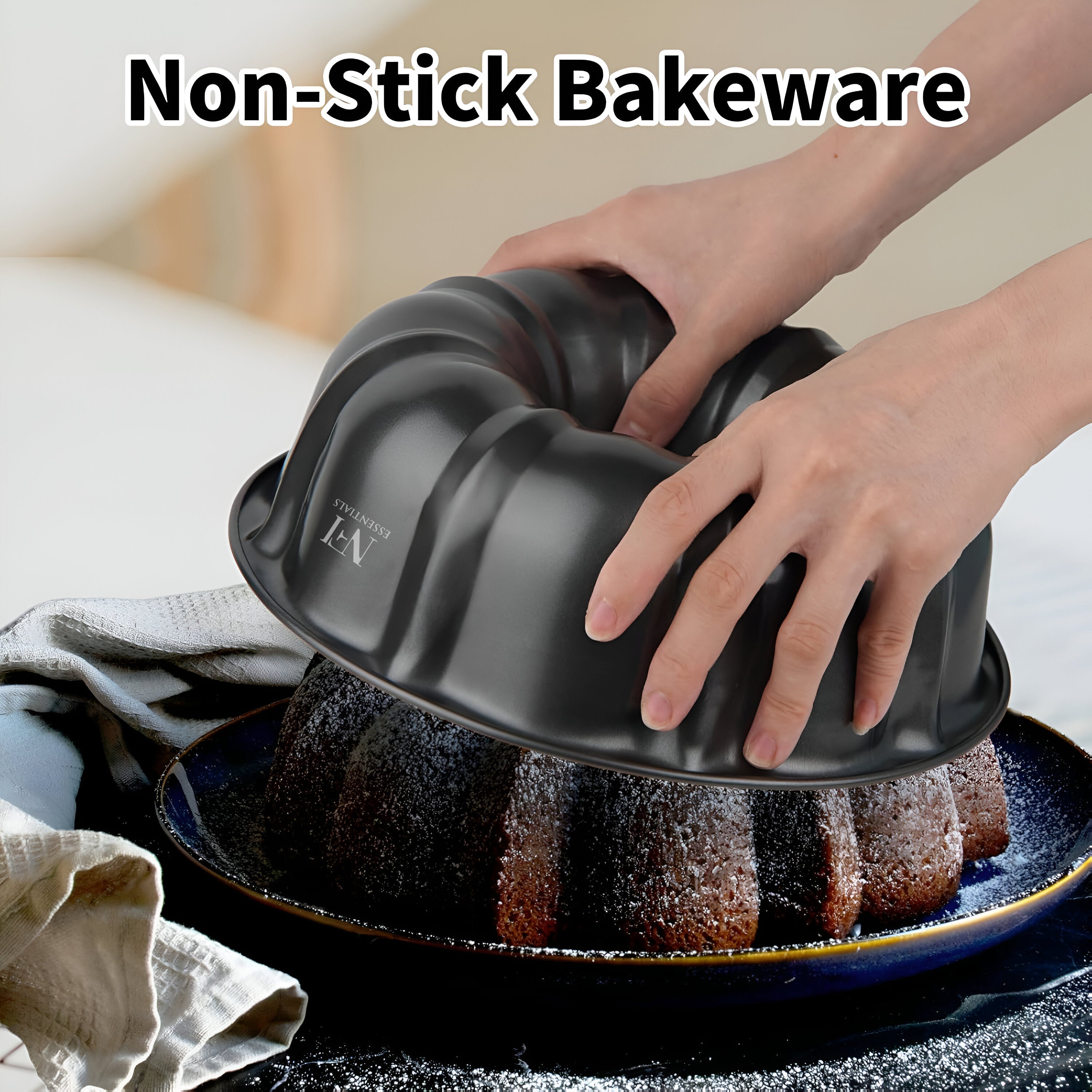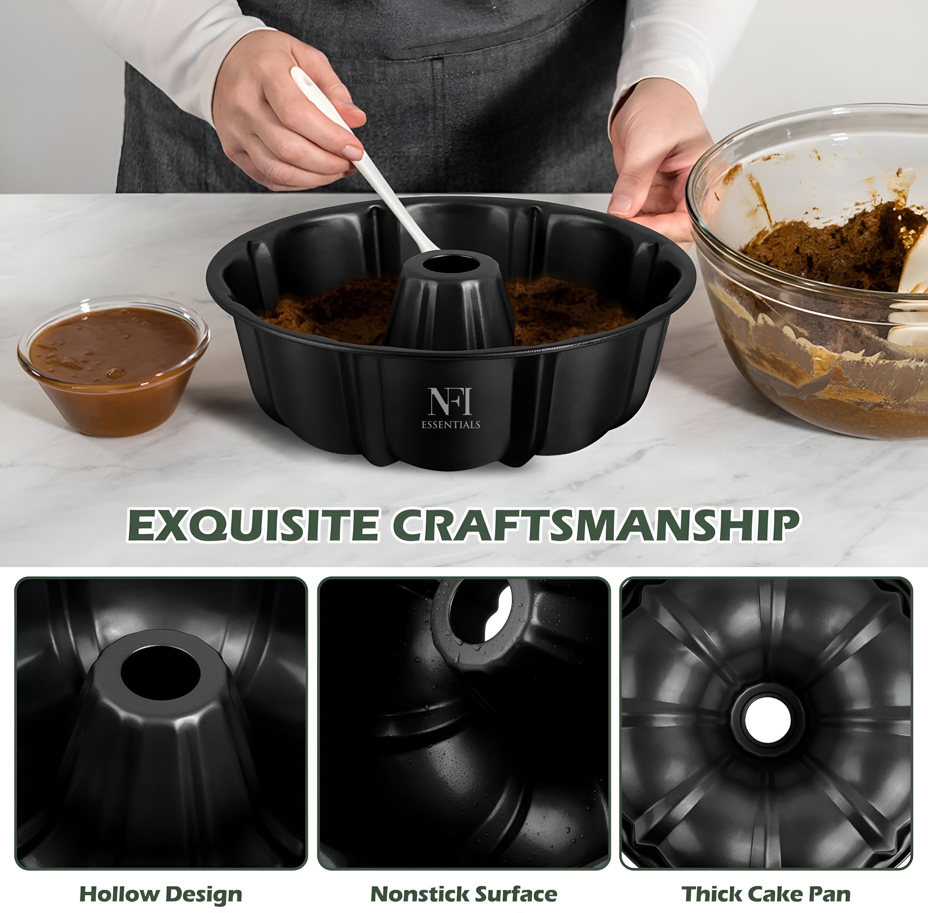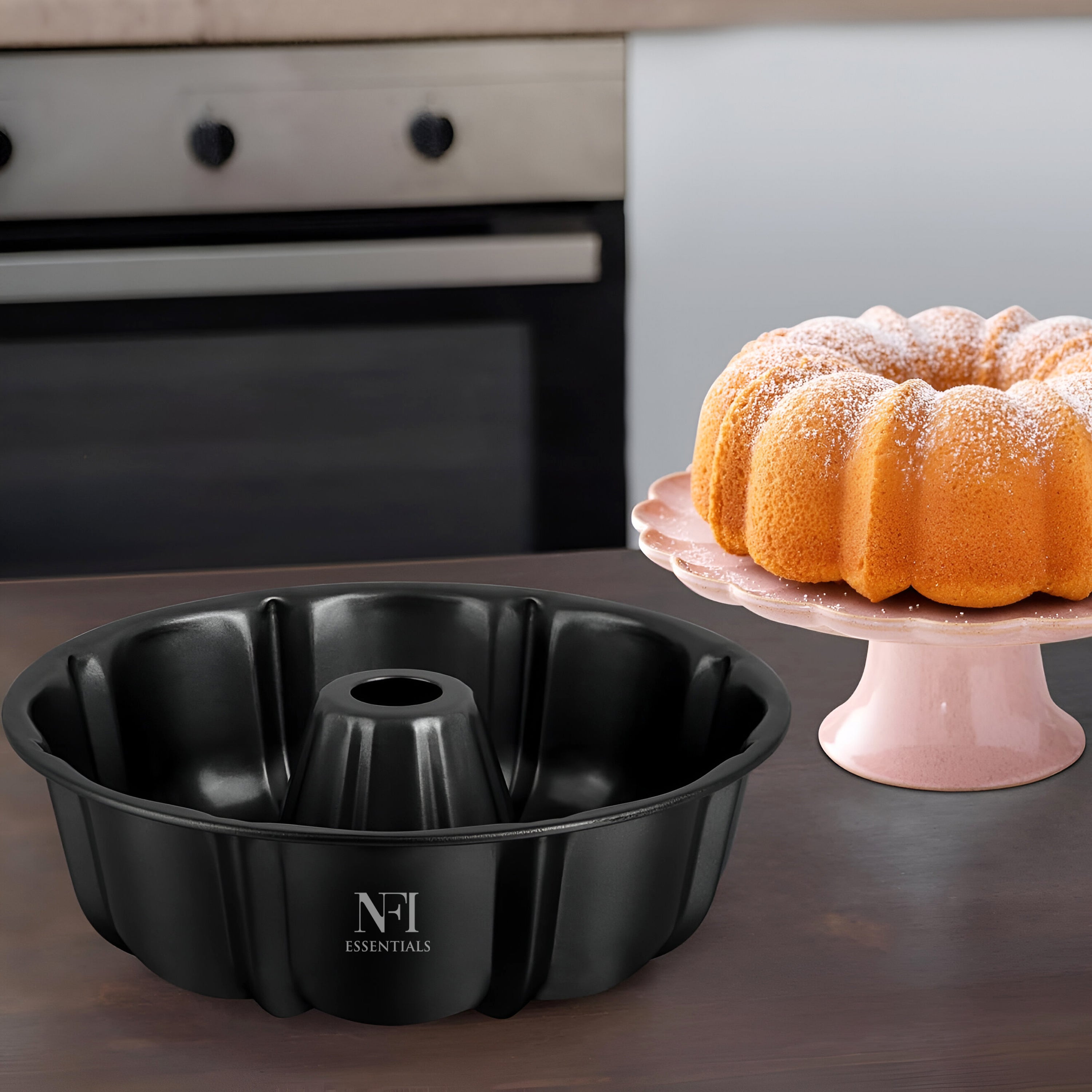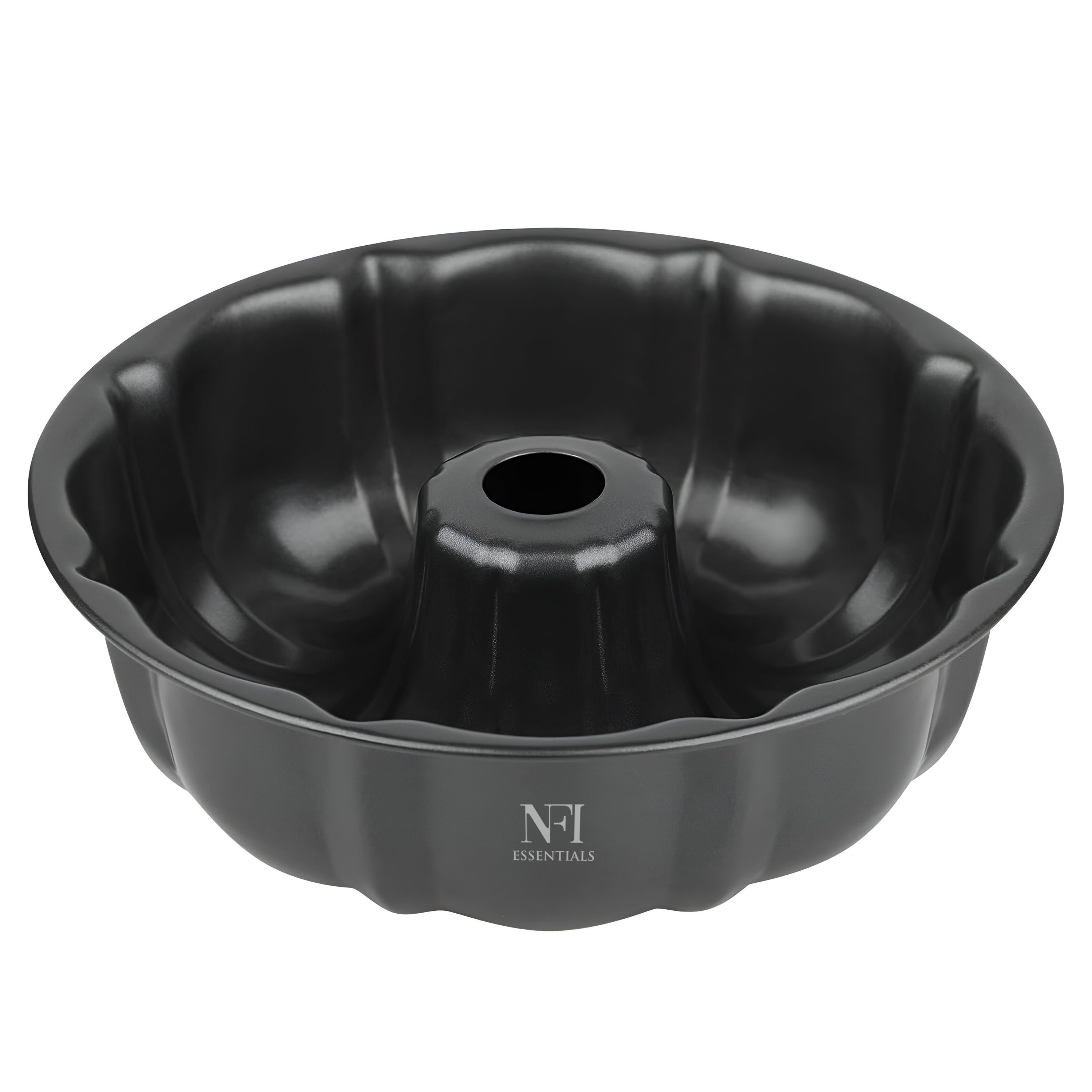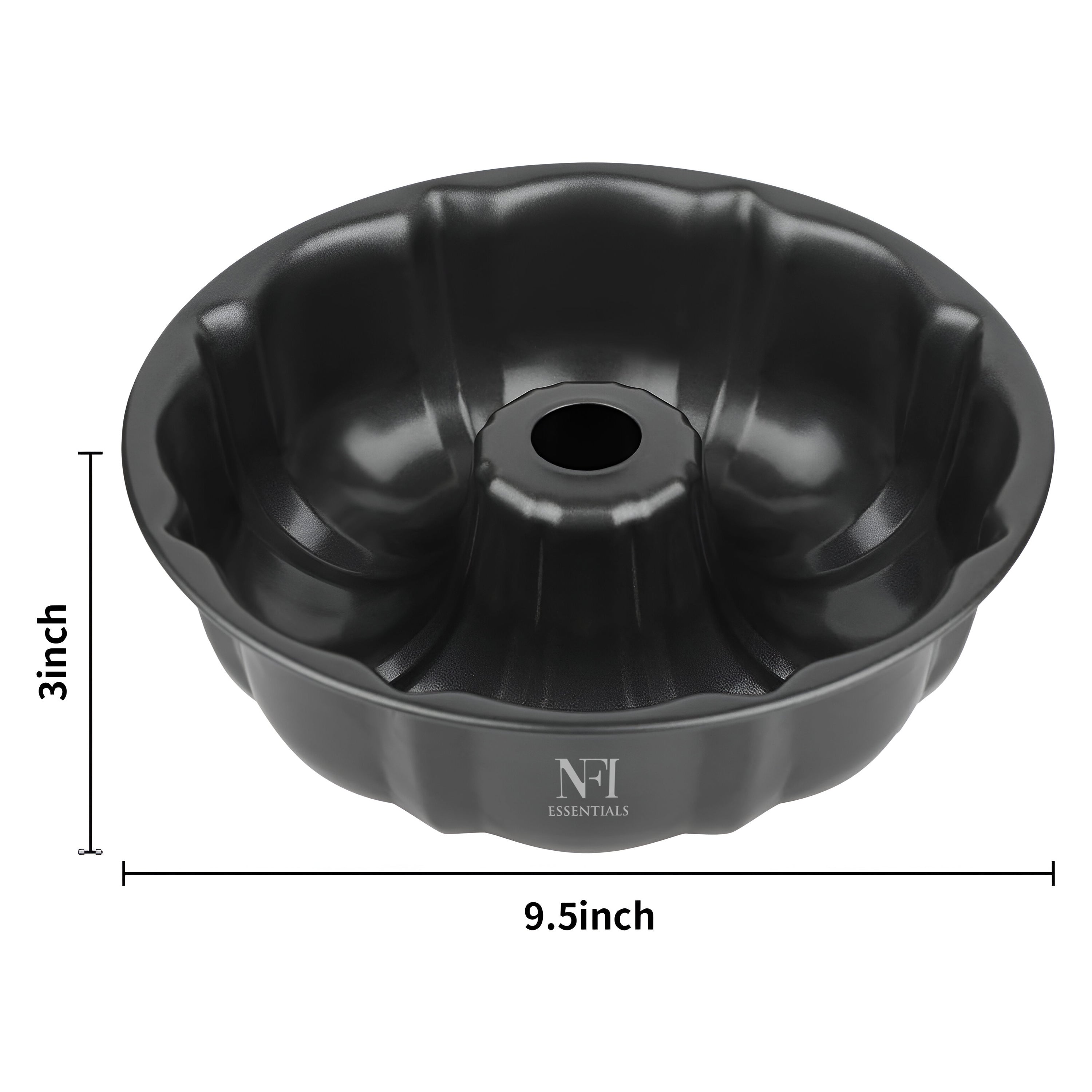 NFI essentials Tube Cake Pan, Heavy Duty Carbon Steel Round Baking Mold, Nonstick Fluted Pan for Baking Pound Cake,Jelly Pan Easy Release & Easy to Clean (9 Inch)