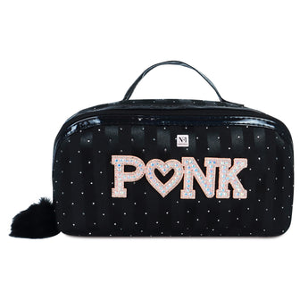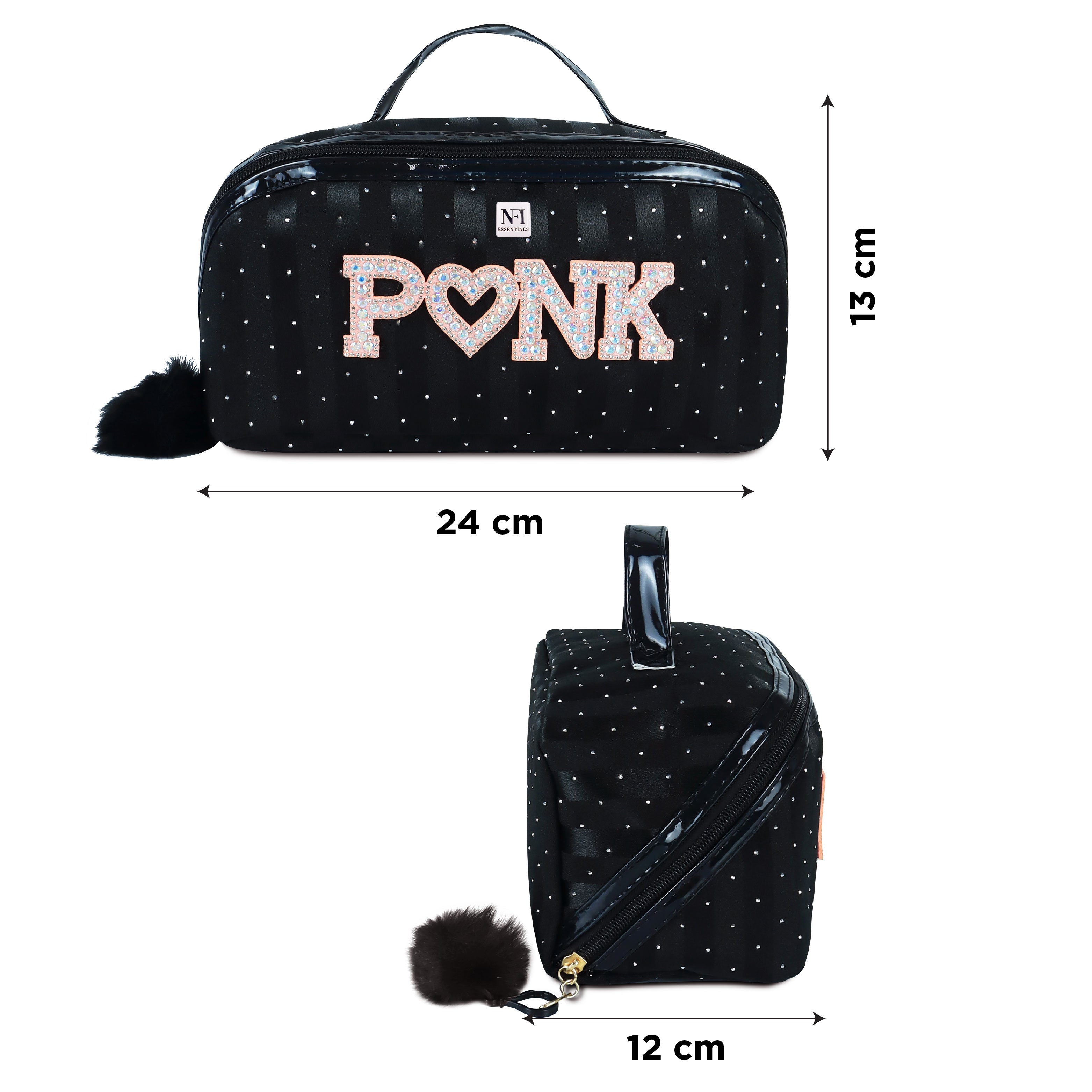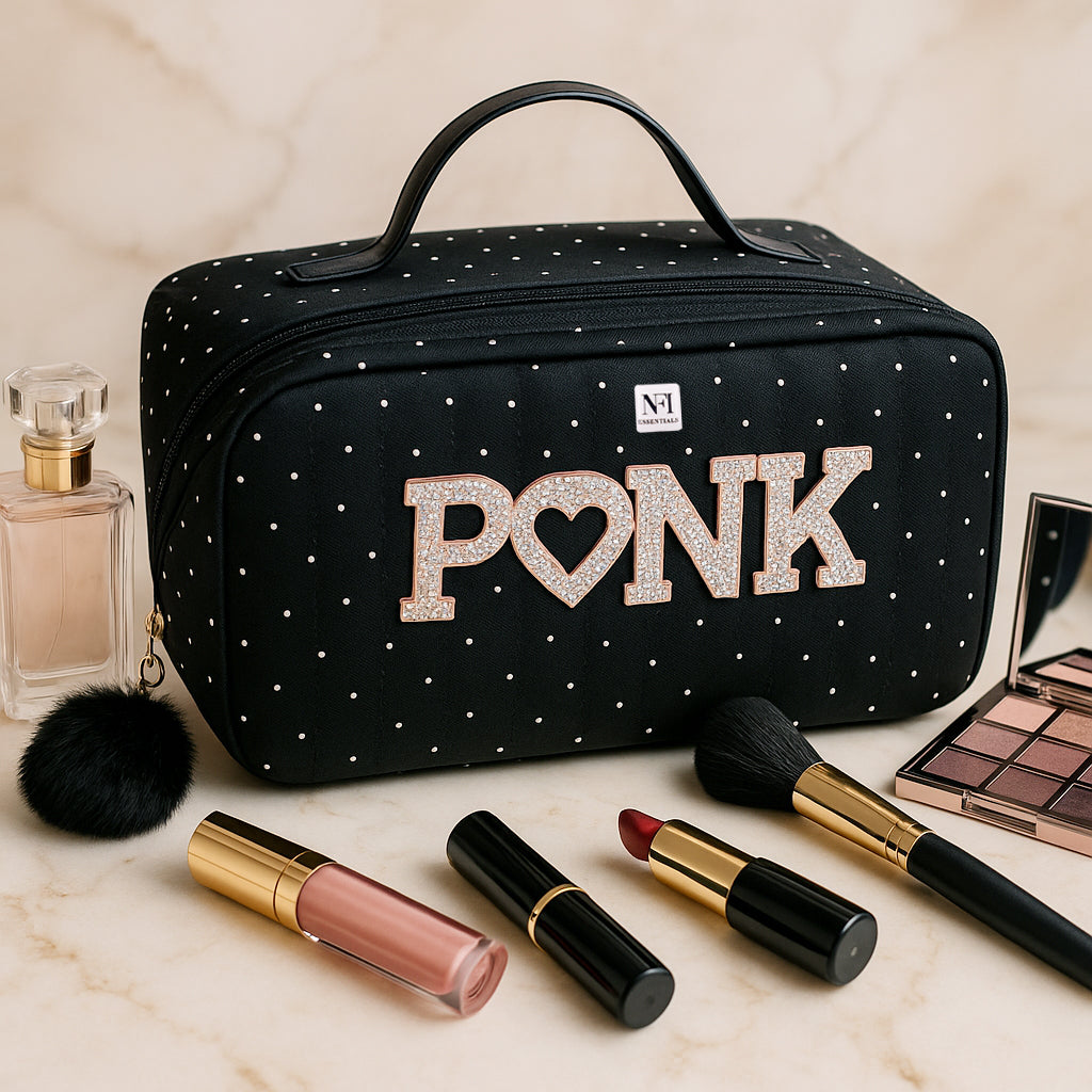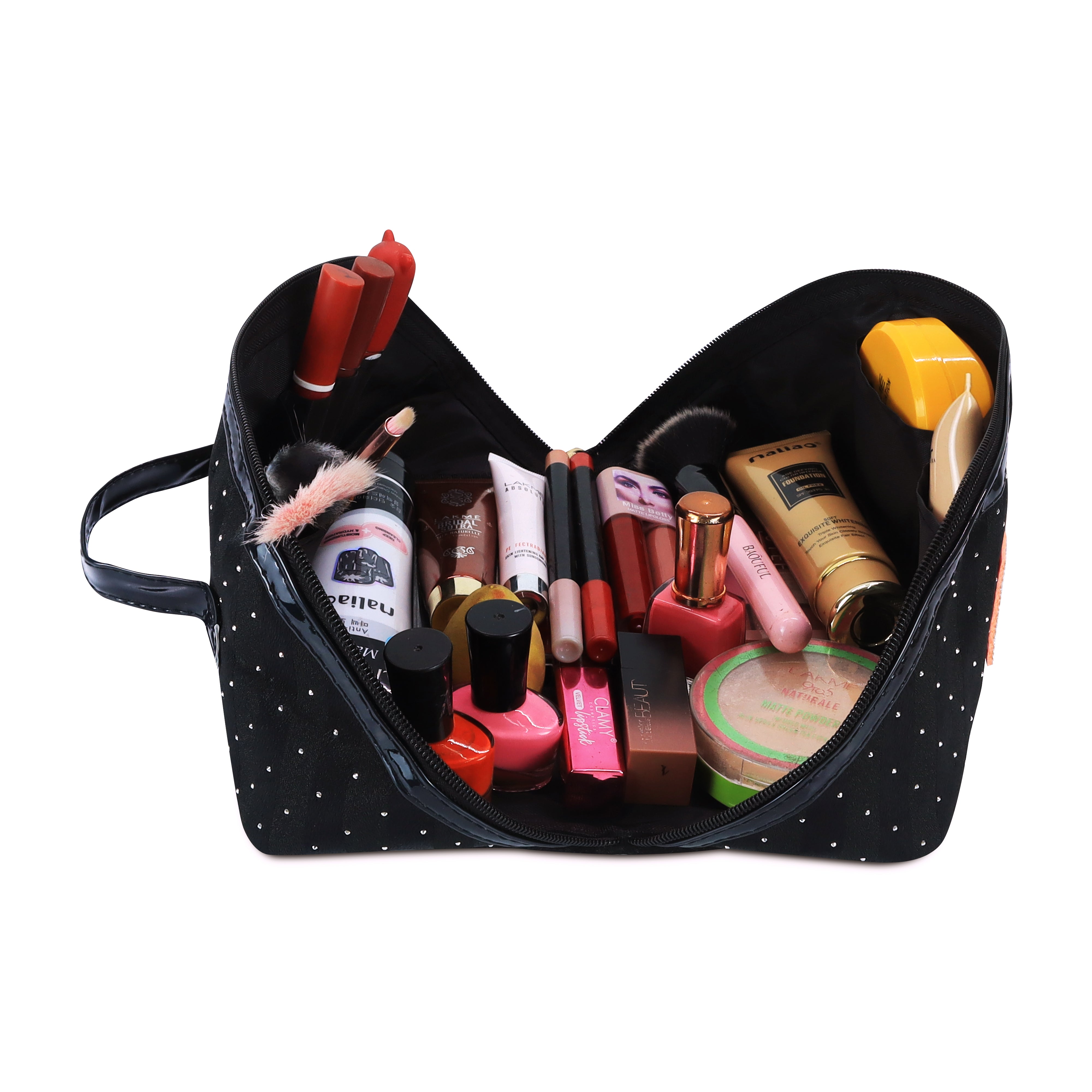 NFI essentials Cosmetic Travel Organizer Bag, Women's Makeup Pouch Toiletry Bag Portable Large Capacity Wide Opening Cosmetics Bag with Handle & Divider