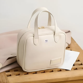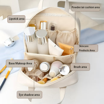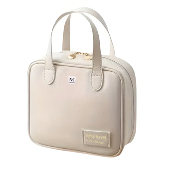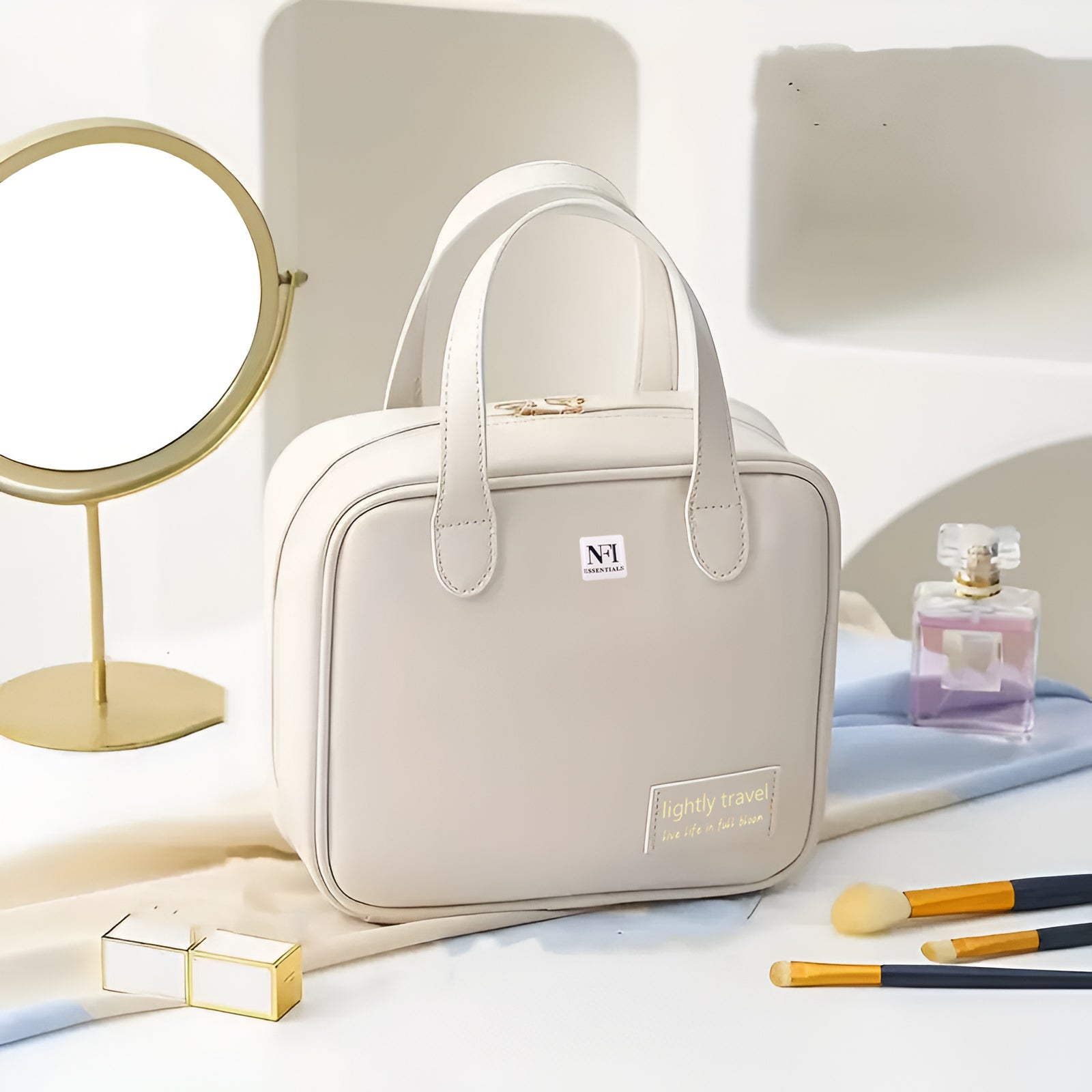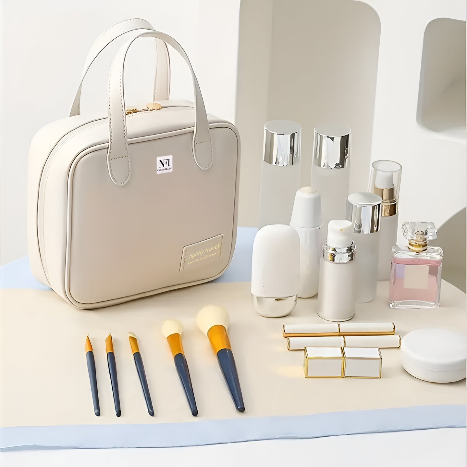 NFI essentials Portable Makeup Bag for Women with Compartments Large Capacity Handheld Travel Toiletry Cosmetic Bag with Handle Large Opening Makeup Pouch