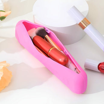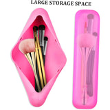 NFI essentials Large Travel Makeup Brush Holder, Silicone Portable Cosmetic Face Brushes Case with Magnetic Closure, Soft and Sleek WaterProof Small Makeup Brush Pouch