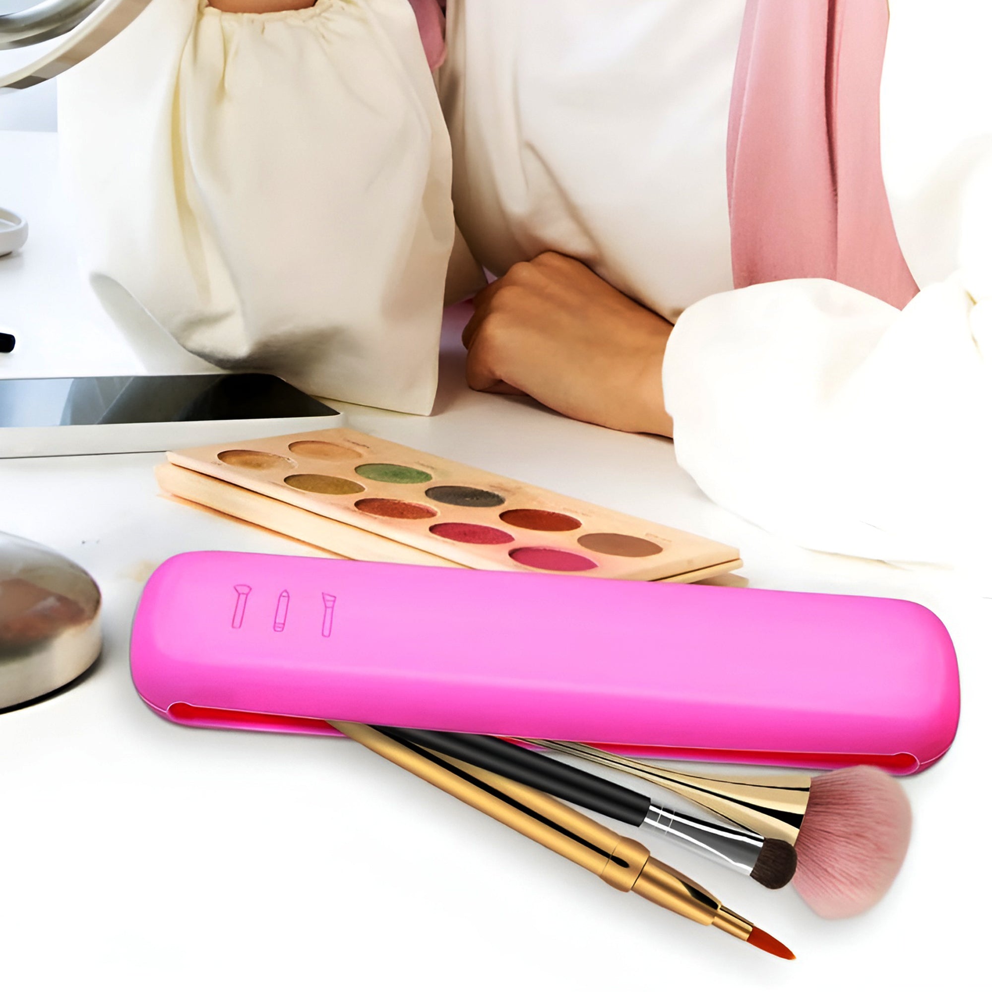 Now you can keep your makeup brushes clean and prolong their lifespan with Bezox makeup brush travel holder. Once makeup brush pouch will give complete protection for your brushes from dust and harm from rubbing. Our makeup brush container is made with Edible-grade silicone so you are sure it is skin-friendly! It is soft and lightweight so it is easy for you to take it on vacation, business conference or for everyday use. Our brush holder features a magnetic buckle in the middle so you can keep your makeup bag neat without as your brushes is sure not to falling out inside. It also has a slightly open ventilation so your brushes can breathe and odor-free! While it is perfect to keep your brushes together without taking up too much room in your cosmetics case or everyday bag, it is also big enough to carry more brushes. It measures 21x5.5x2 cm, so you can fit larger brushes.