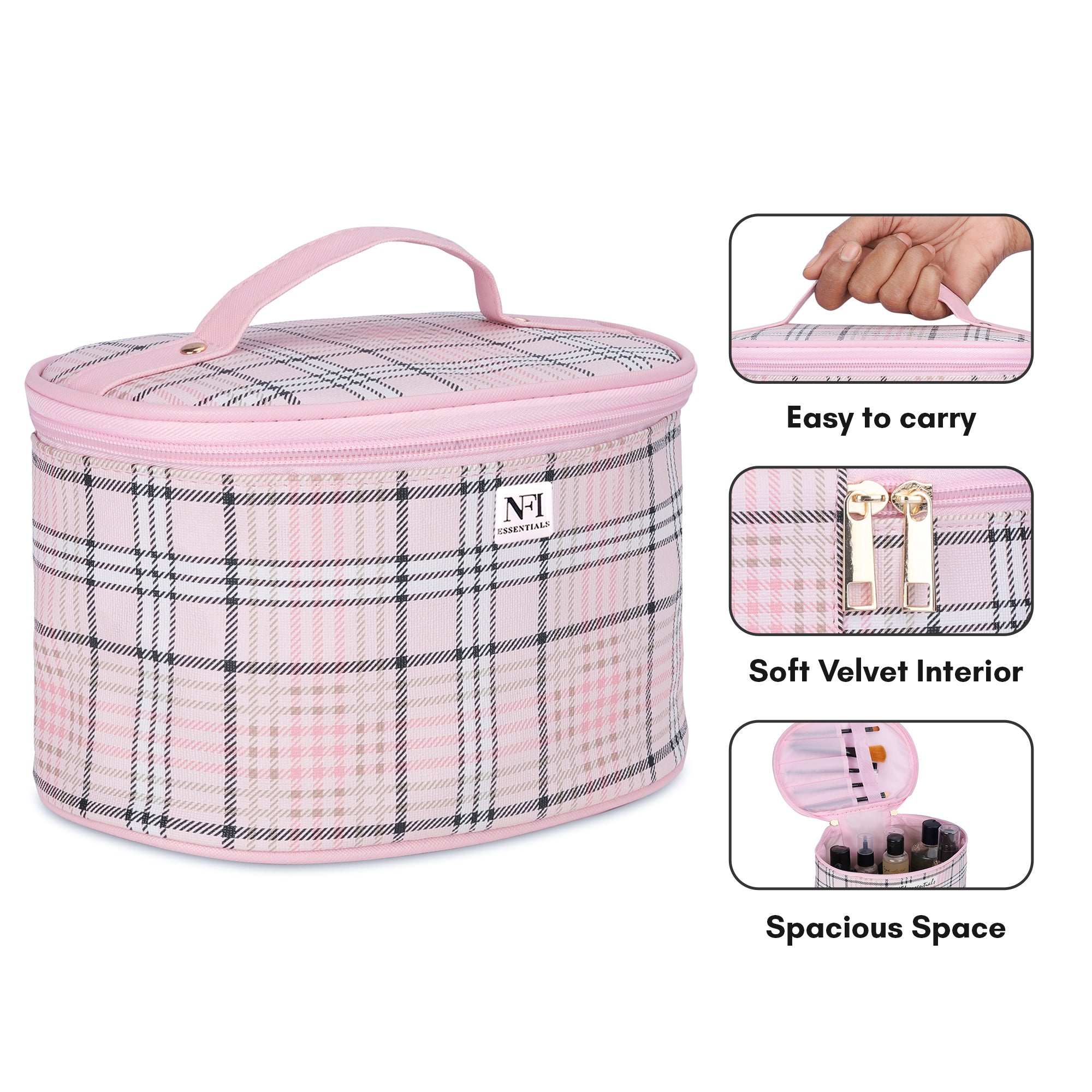 NFI essentials Makeup Pouch, Cosmetic Pouch for Women, Cosmetic Organiser Storage Bag, Vanity Organizer, Make up Pouches, Toiltery Travel Pouche (Pink)