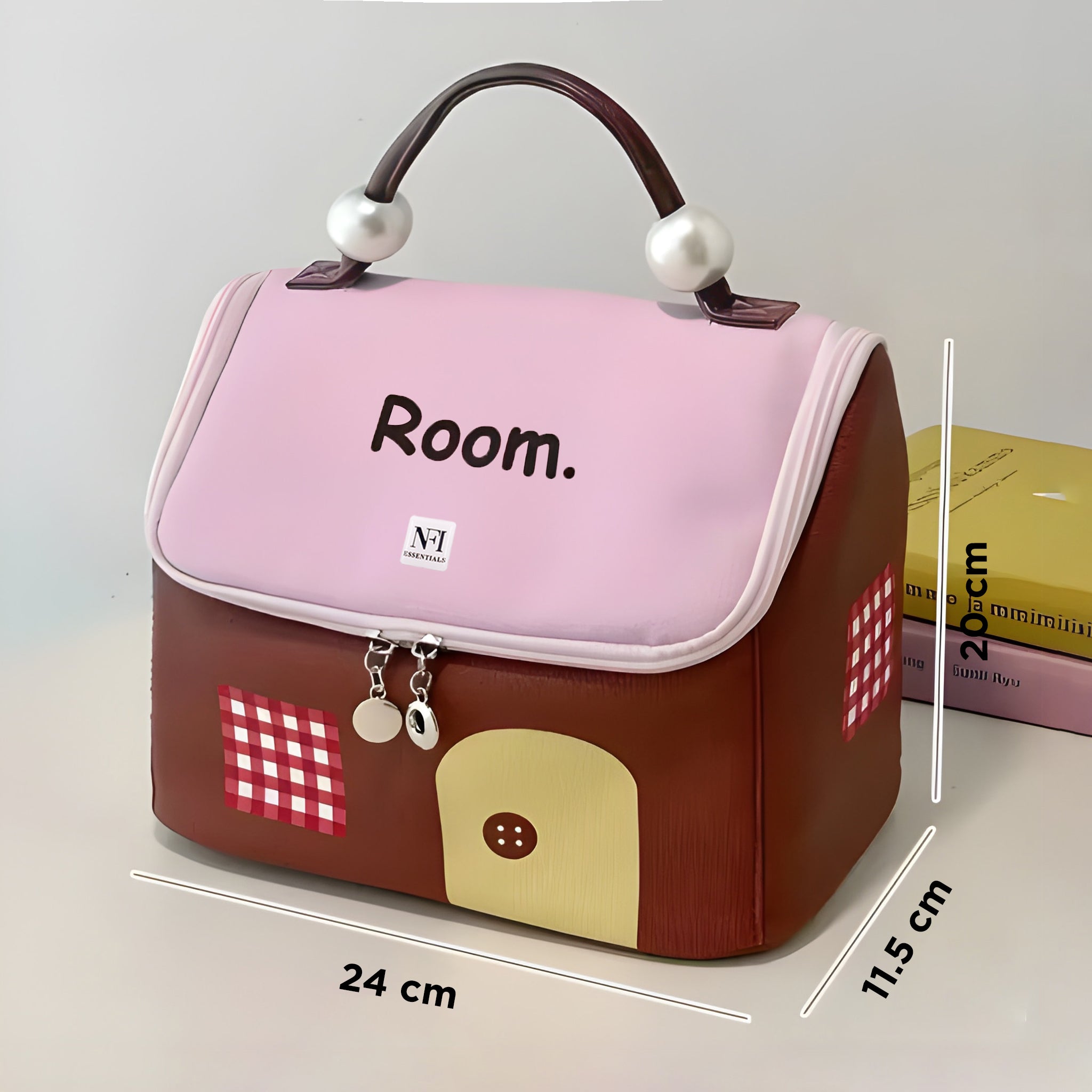 NFI essentials Makeup Pouch for Women, House Shaped Cosmetic Bag, Stylish Pouch for Makeup Accessories, Travel Pouch Vanity Kit Organiser Toiletry Bag Make up Pouch for Girls
