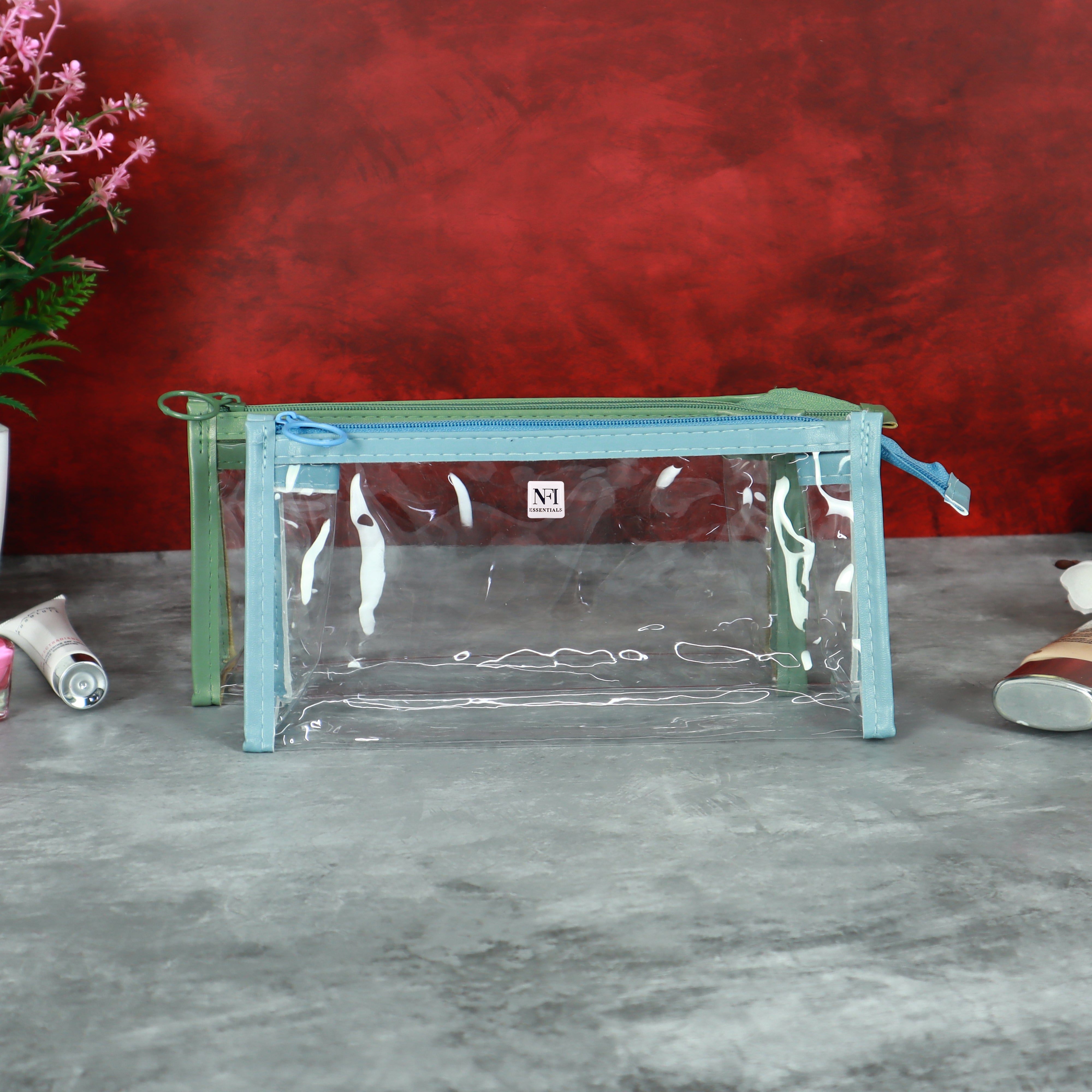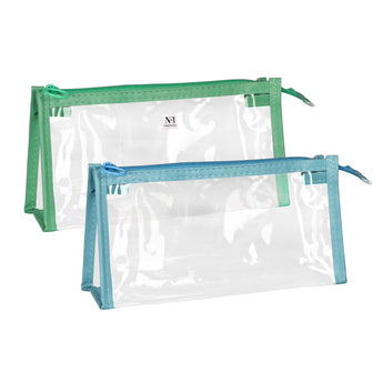 NFI essentials Set of 2 Makeup Pouch for Women, Transparent Stationary Pencil Pouch with Zipper Closing for Girls & Boys, Organizer for School, Collage, Office, Toiletry Cosmetic Bag