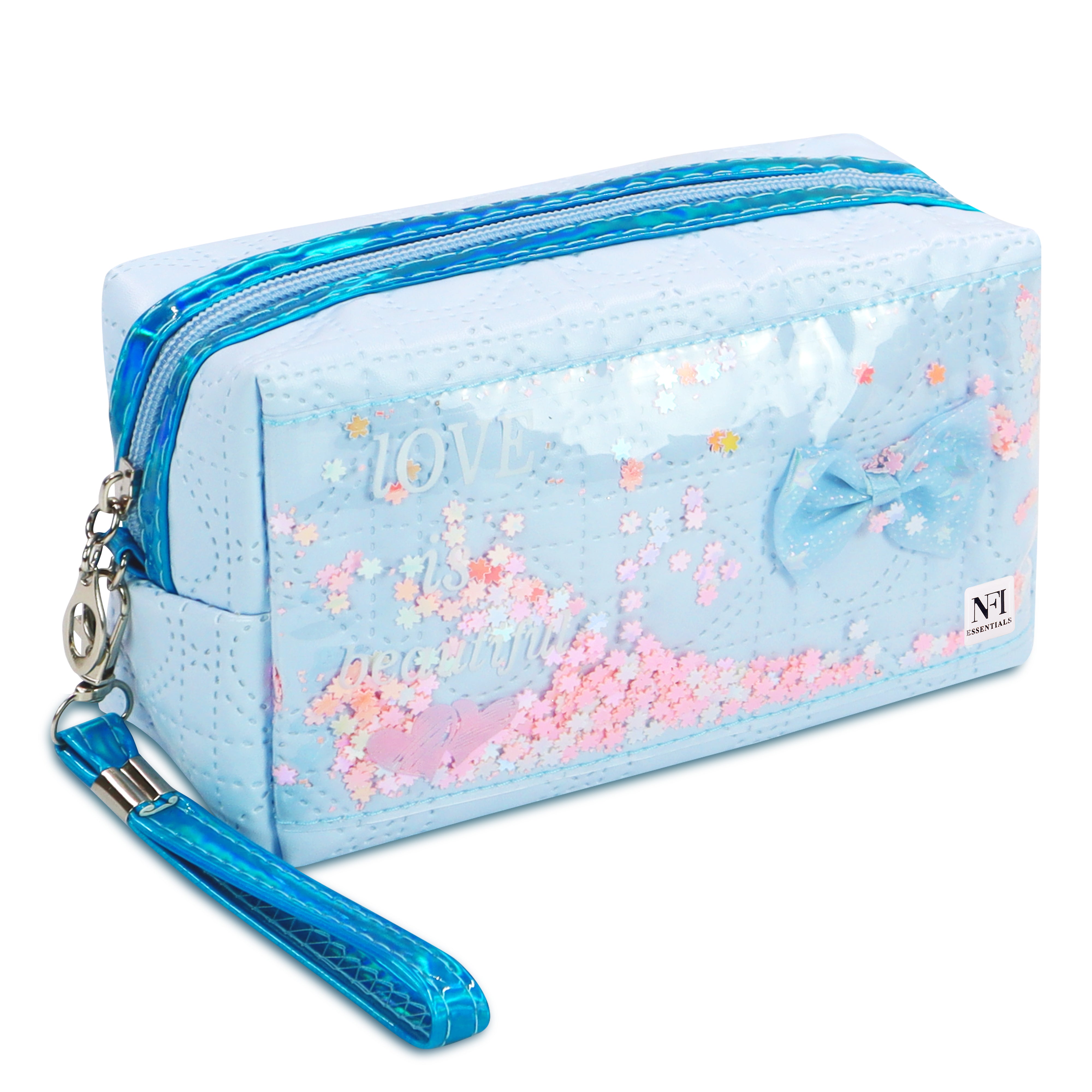 This Multifunctional Cosmetic Bag not only can storage your cosmetics, but also Jewellery, Electronic Accessories, Stationary items, Camera, Essential oil, Toiletries, Shaving Kit, Valuable objects and so on. It has smooth zipper and durable detachable handle and precise stitching. The shining stars & the butterfly on the front, classic and solid bright color make the toiletry bag very trendy & beautiful which adds shining stars to your personality. This makeup bag is Portable and Lightweight, very suitable for storage of cosmetics in suitcase, handbag, etc. and easy to carry when traveling or on bussiness. We recommend to use her to carry cosmetics, skincare, haircare, accessories, stationary. The use of our makeup bag is very varied, it can be used as a makeup bag, travel bag, handbag, makeup brush bag, etc. in a variety of occasions can be used as your holding assistant. Whether you're going to work, traveling or partying, it's easy to carry. And our bags are versatile and stylish, no matter what to wear! Our clear zipper pouches are characterized by zippered design, which are glided smoothly, the zippers can be closed firmly, you will not worry about the contents falling out or losing and the opening on the top can be applied to allow you get your items more easily in seconds.