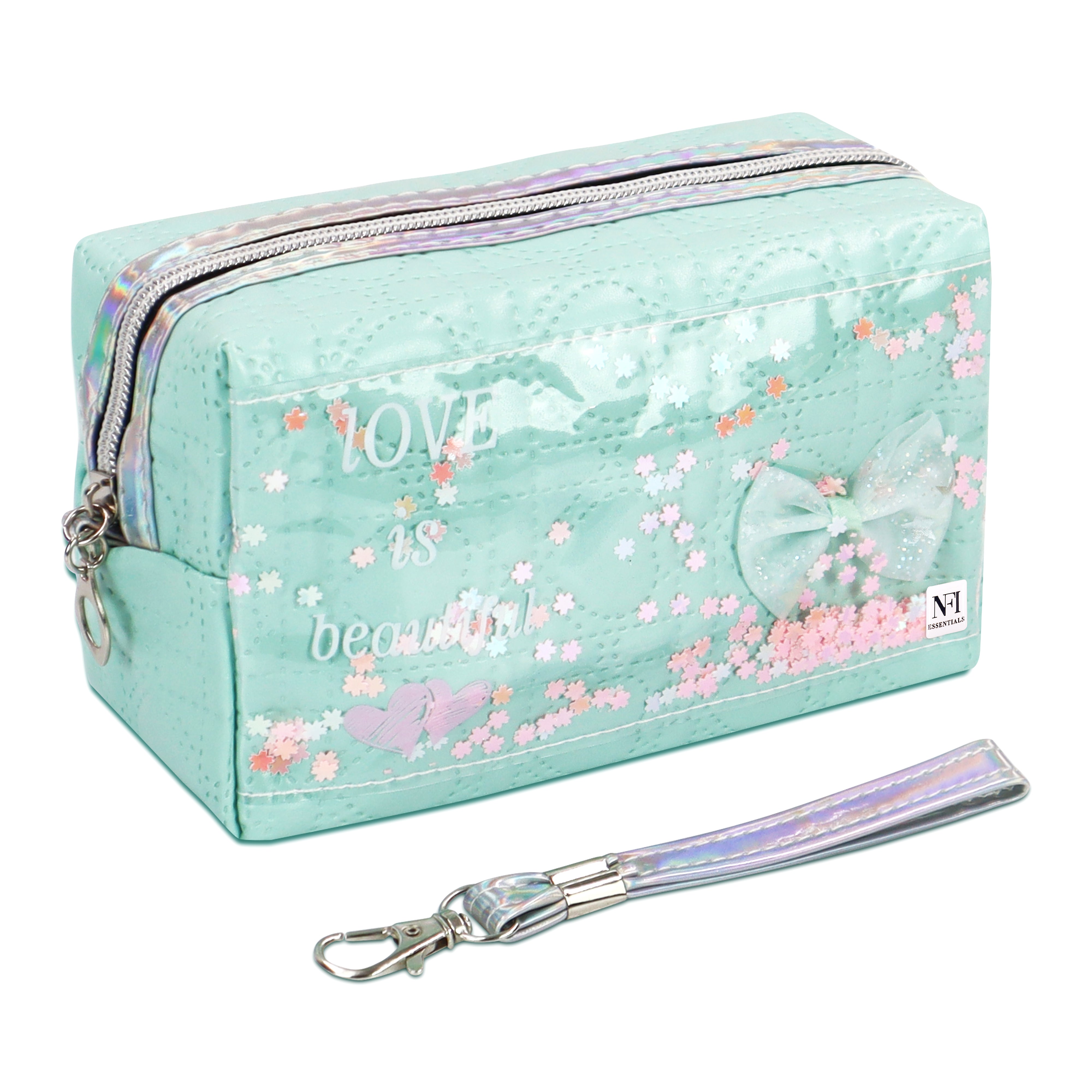 NFI essentials Pack of 2 Makeup Pouch Cosmetic Pouch Vanity Case Jewellery Pouch Stationery Pencil Case Travel Organiser Travel Pouch with Detachable Handle