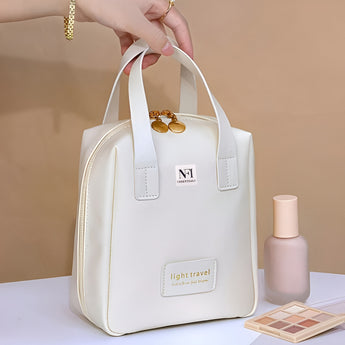 NFI essentials Portable Handheld Makeup Bag for Women with Compartments Large Capacity Travel Toiletry Cosmetic Bag with Handle Large Opening Makeup Pouch