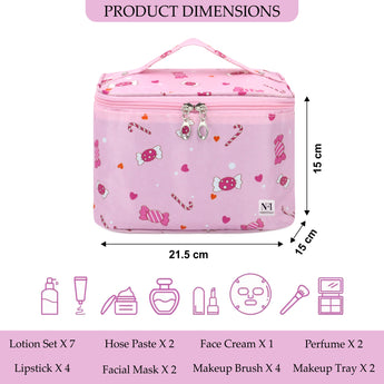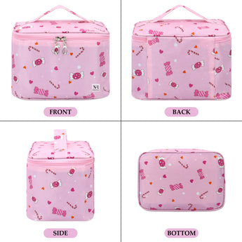 Our makeup bag has a sturdy handle and is composed of water-resistant oxford cloth. It is portable to use because the makeup bag has a handle. Makeup brushes, lipsticks, nail polish, perfume bottles, skin care items, jewelry, eyeliner, and more can all be stored in it. It is possible to store a variety of products in this large compartment makeup organizer. Travel Cosmetics Bags: Convenient Makeup Bags for Women and Girls. Travel-ready High Capacity Cosmetic Cases, Toiletries Organizer, Zipper Wash Beauty Pouch for Women Makeup. This large makeup bag for travel is a very useful and compact bag. Perfect for any countertop, bathroom counter, dressing table, vanity, or bedroom, this multifunctional cosmetic stand fits everywhere. The vanity bag is a useful tool for makeup lovers and travelers as it can hold not only your cosmetics but also jewelry, essential oil, toiletries, and shaving supplies. Perfect for any countertop, bathroom counter, dressing table, vanity, or bedroom, this multifunctional cosmetic stand fits everywhere. The two-way metal zipper is beautifully crafted, ensuring that you have a wonderful experience using it. It is foldable, so you can carry it anywhere with ease.
