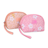 NFI essentials Makeup Pouch Flower Print Makeup bag Pouch for Makeup accessories Semicircle Cosmetic Bag Vanity Kit Stationery Pencil Case Toiletry Bag Make up pouch (Pink & Biege)