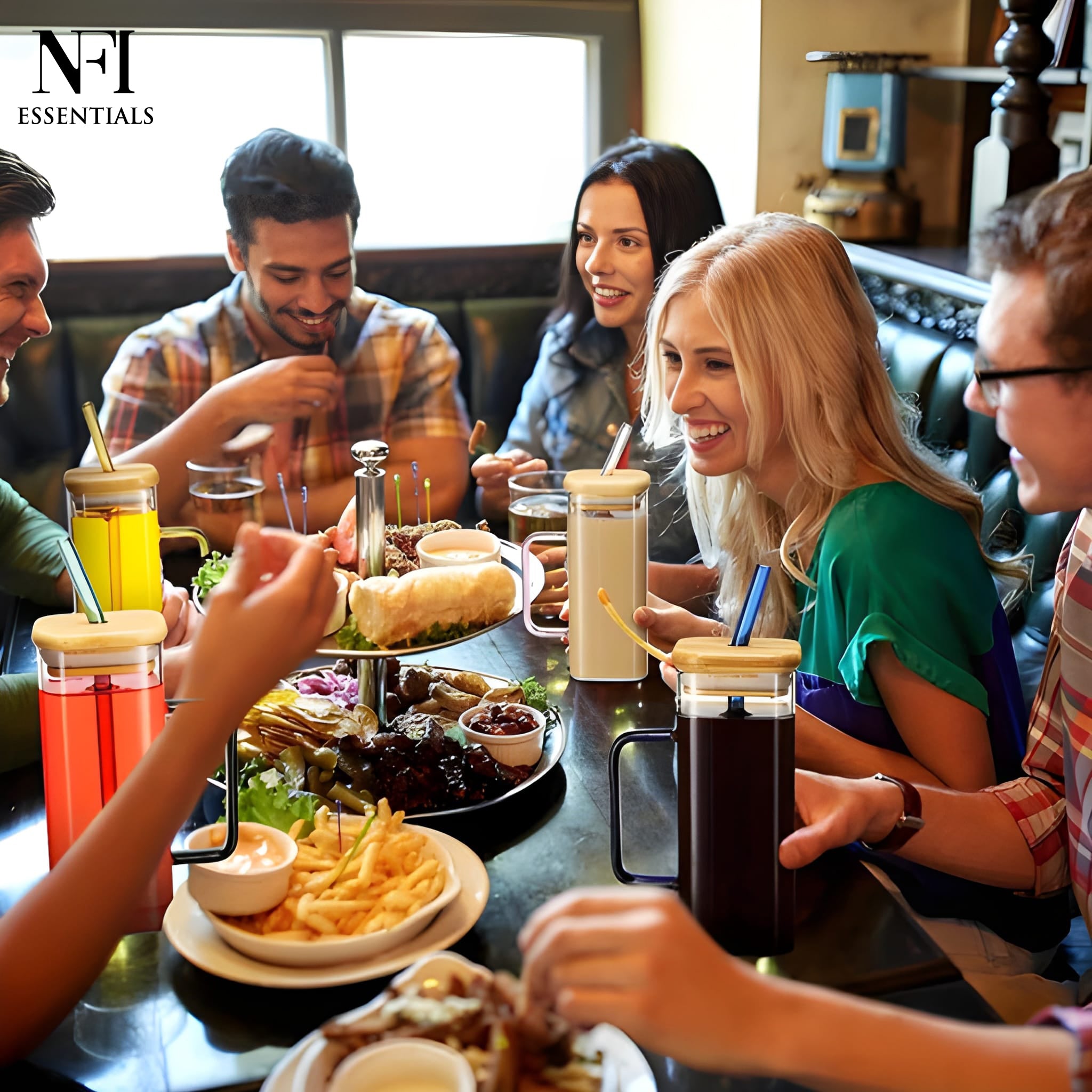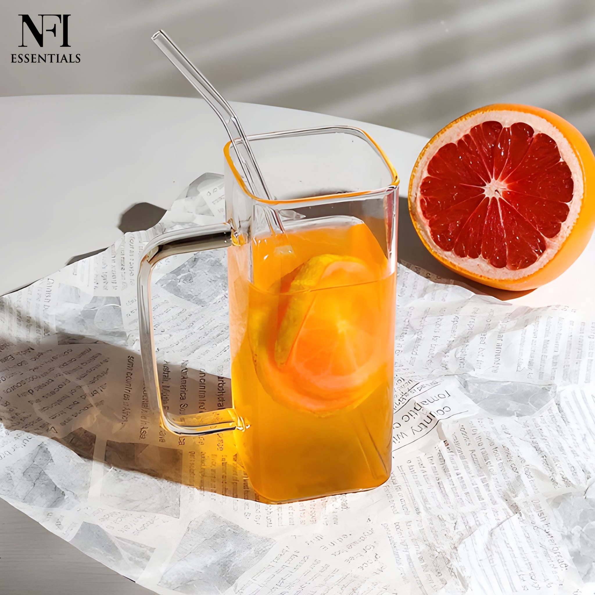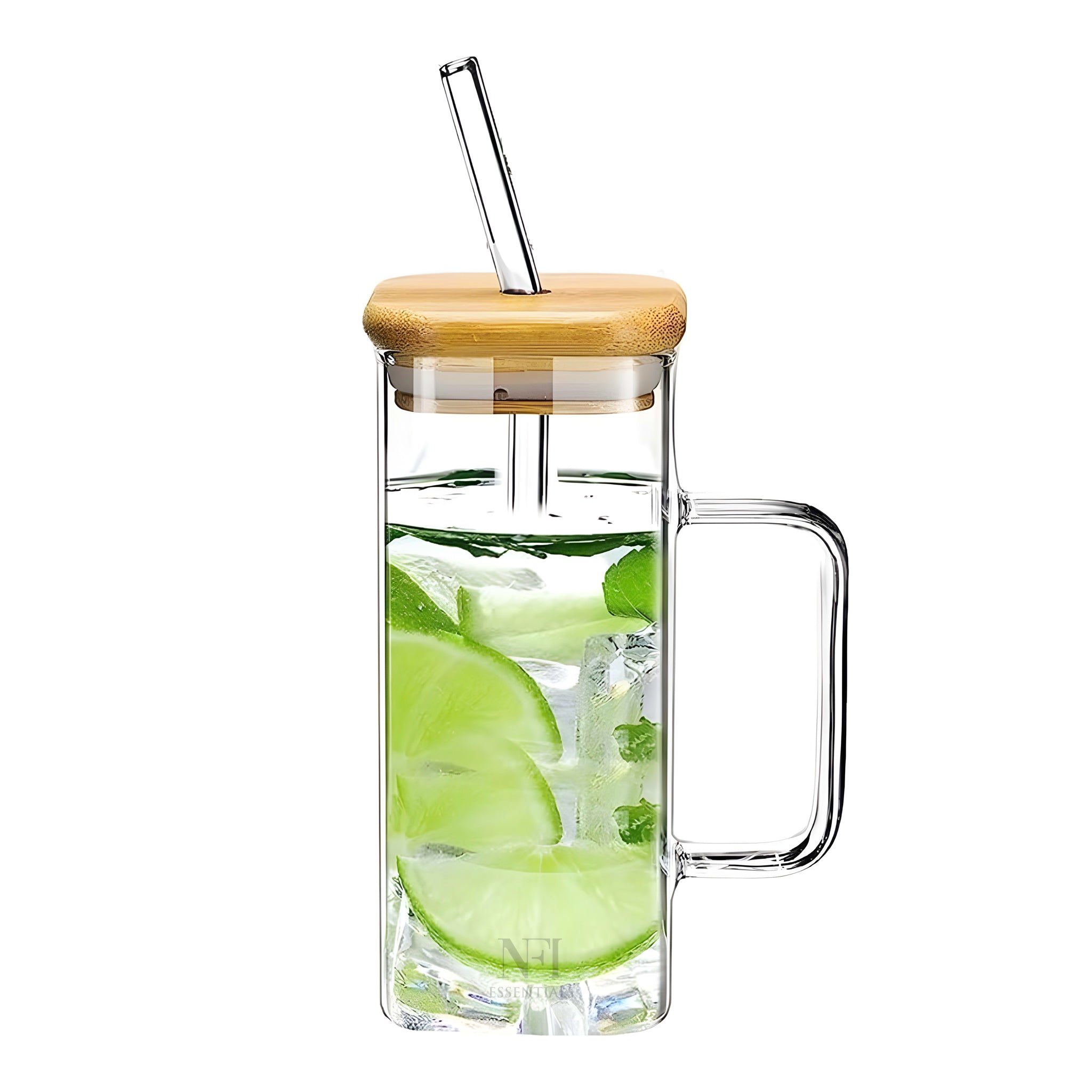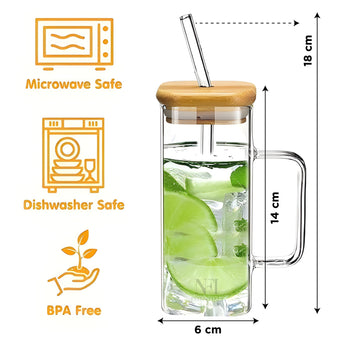 NFI essentials Drinking Glass Tumbler Sipper with Bamboo Lid and Reusable Glass Straw With Handle For Mojito, Milkshakes, Juices, Smoothies, Iced Coffee & Iced Tea 350ml