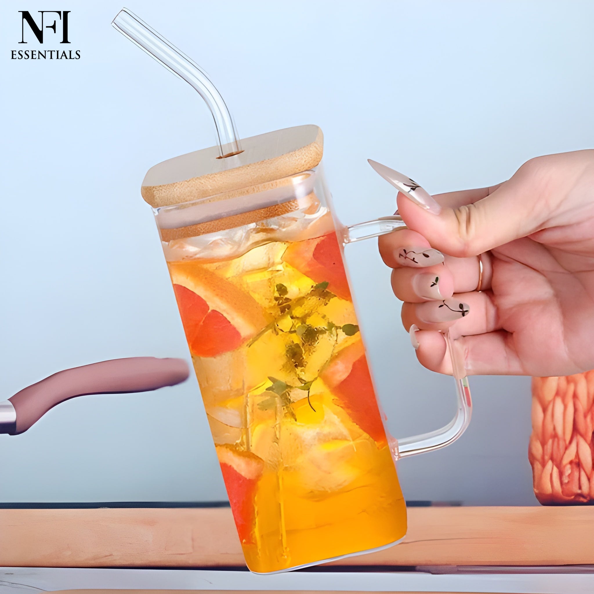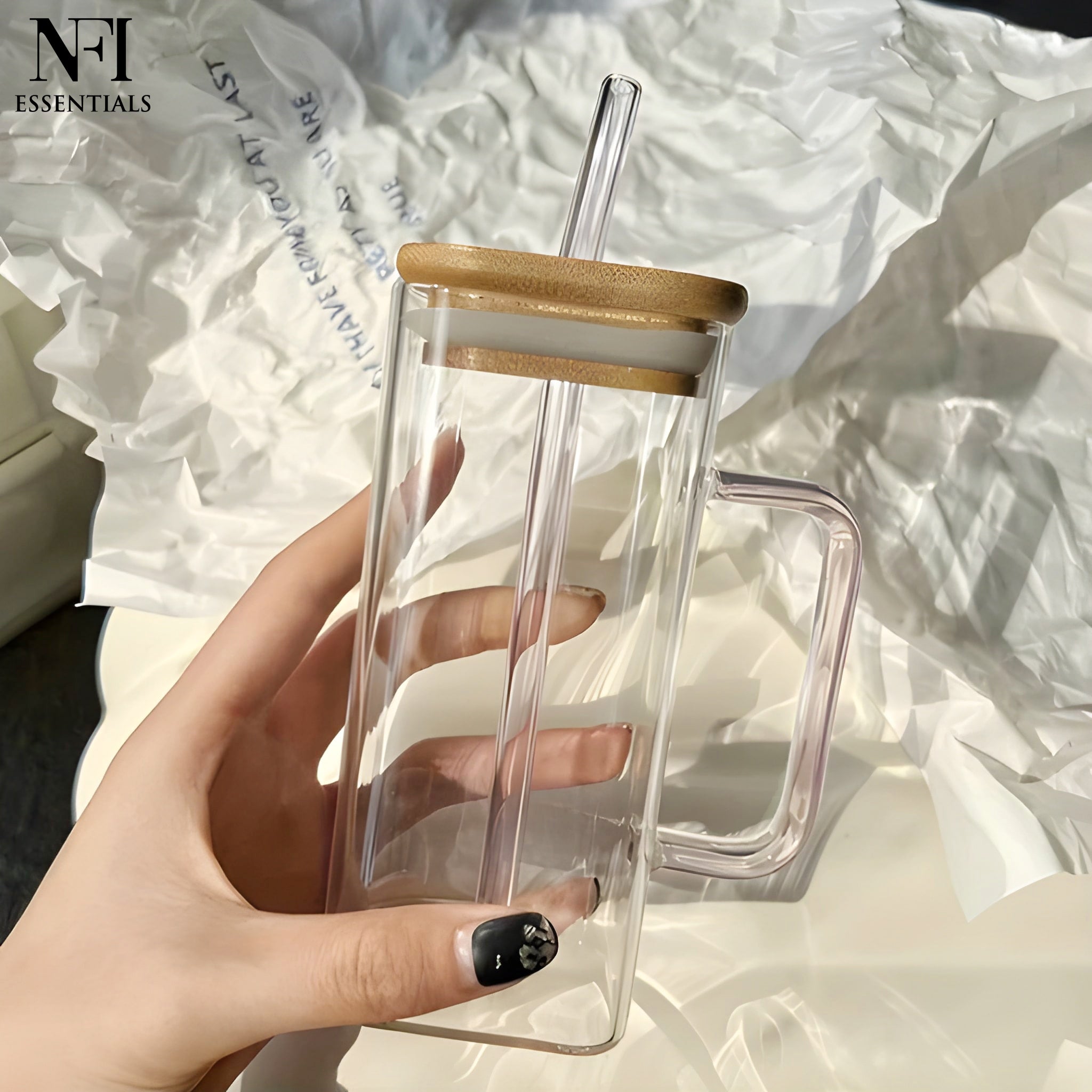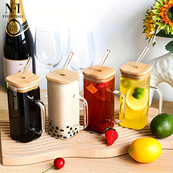 Elevate your beverage experience with our Premium Glass Tumbler with Bamboo Lid and Reusable Glass Straw – the perfect combination of sustainability, functionality, and modern design. Whether you're sipping a refreshing iced tea, a creamy smoothie, or your morning iced coffee, this thoughtfully designed tumbler is made to serve both your lifestyle and the environment. The tumbler is topped with a natural bamboo lid, adding a touch of eco-conscious sophistication. The lid features a snug silicone ring for a secure, leak-resistant seal, helping to keep your drinks fresh and prevent spills  perfect for at-home use, office desks, or taking beverages on the go. The lid’s smooth finish and subtle bamboo fragrance offer a natural feel that sets it apart from plastic alternatives. o complete the experience, it includes a reusable borosilicate glass straw, perfectly sized for both thin and thick beverages like iced lattes, bubble tea, juices, or protein shakes. The straw is dishwasher-safe, easy to clean, and eliminates the need for wasteful single-use plastic straws.