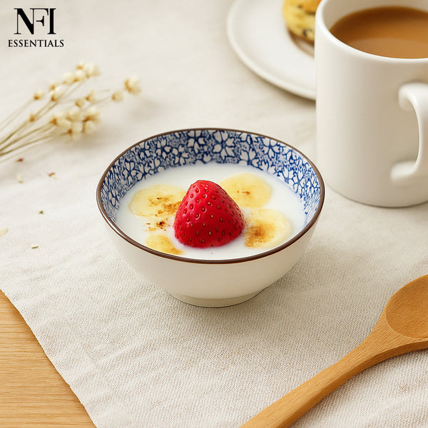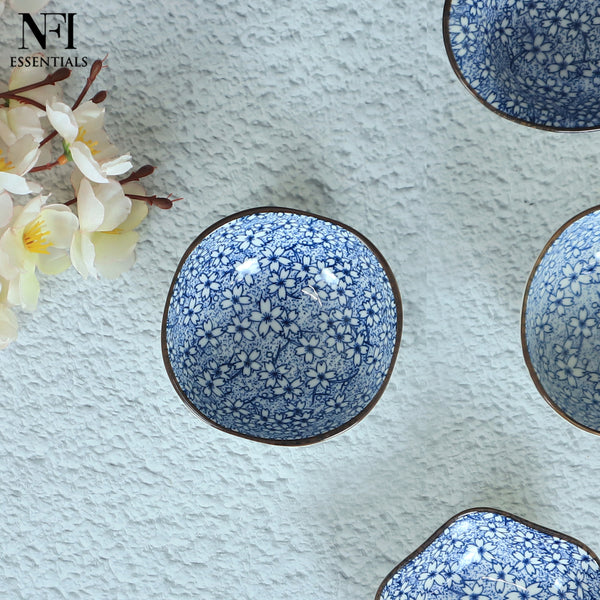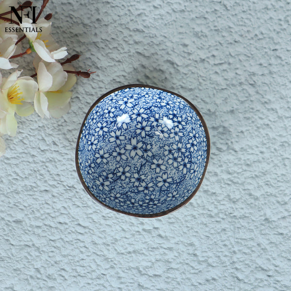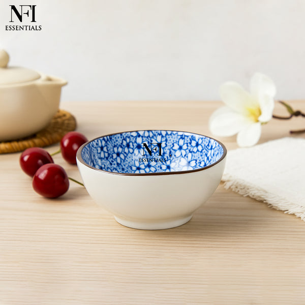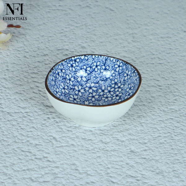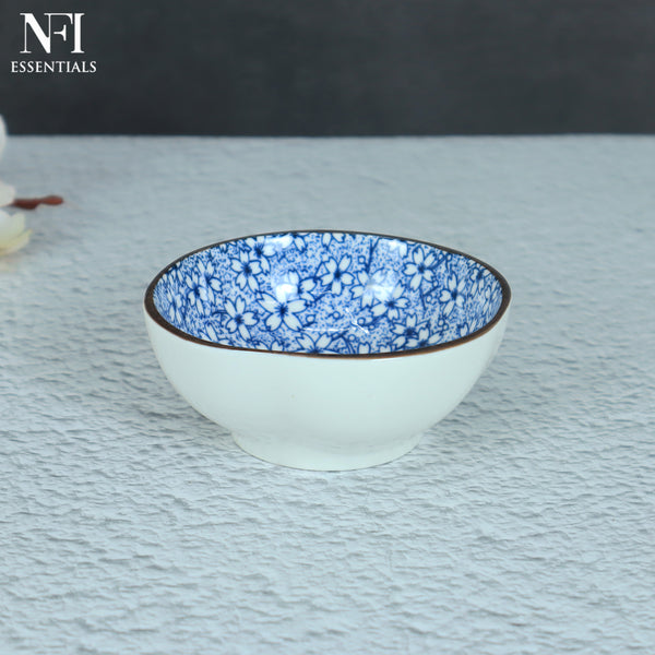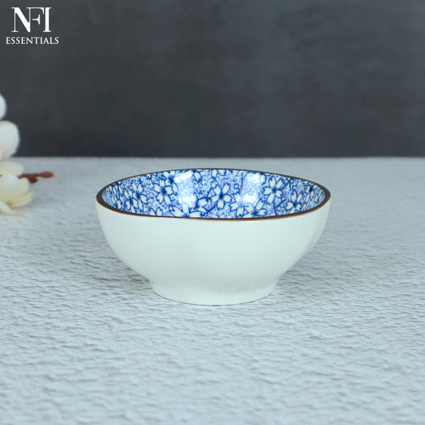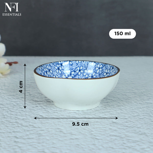 NFI essentials Mini Ceramic Bowl Microwave & Dishwasher Safe Small Serving Katori Ideal for Nuts, Chutney, Pickle & Dry Fruits, Blossom Design 3.6 Inch (150ml)
