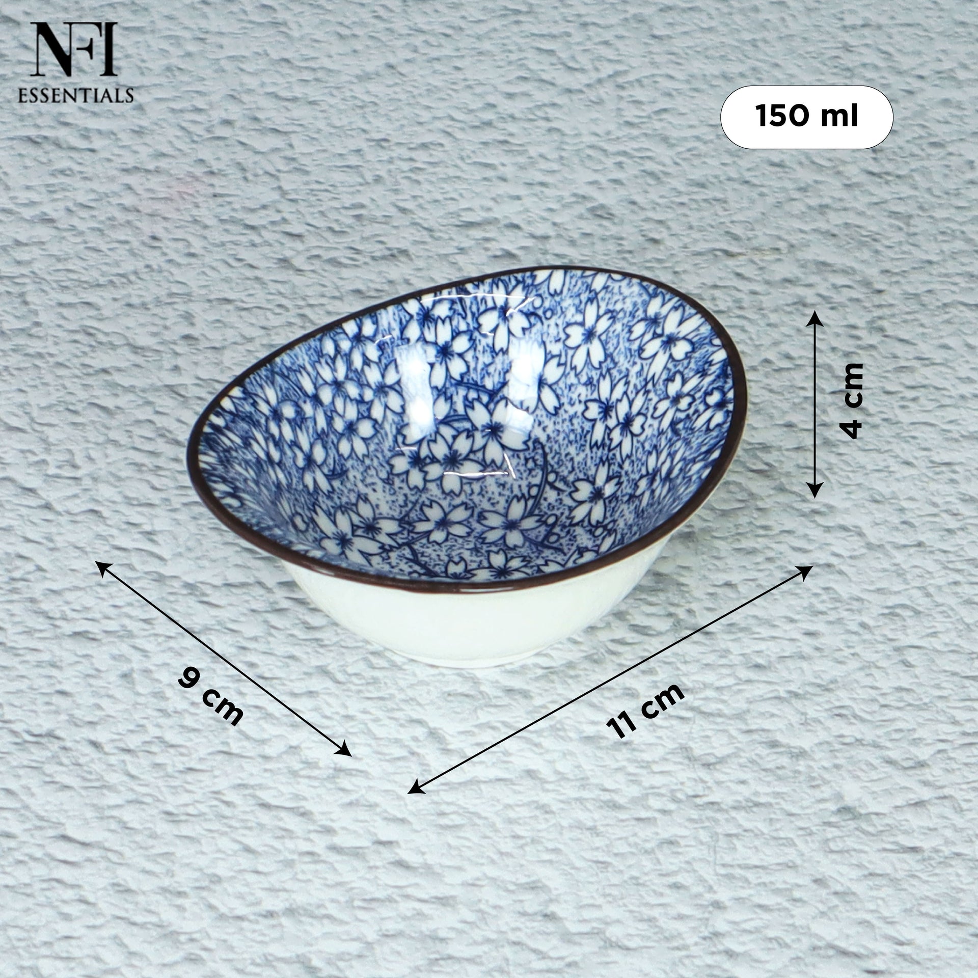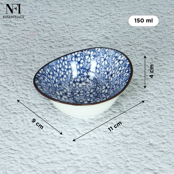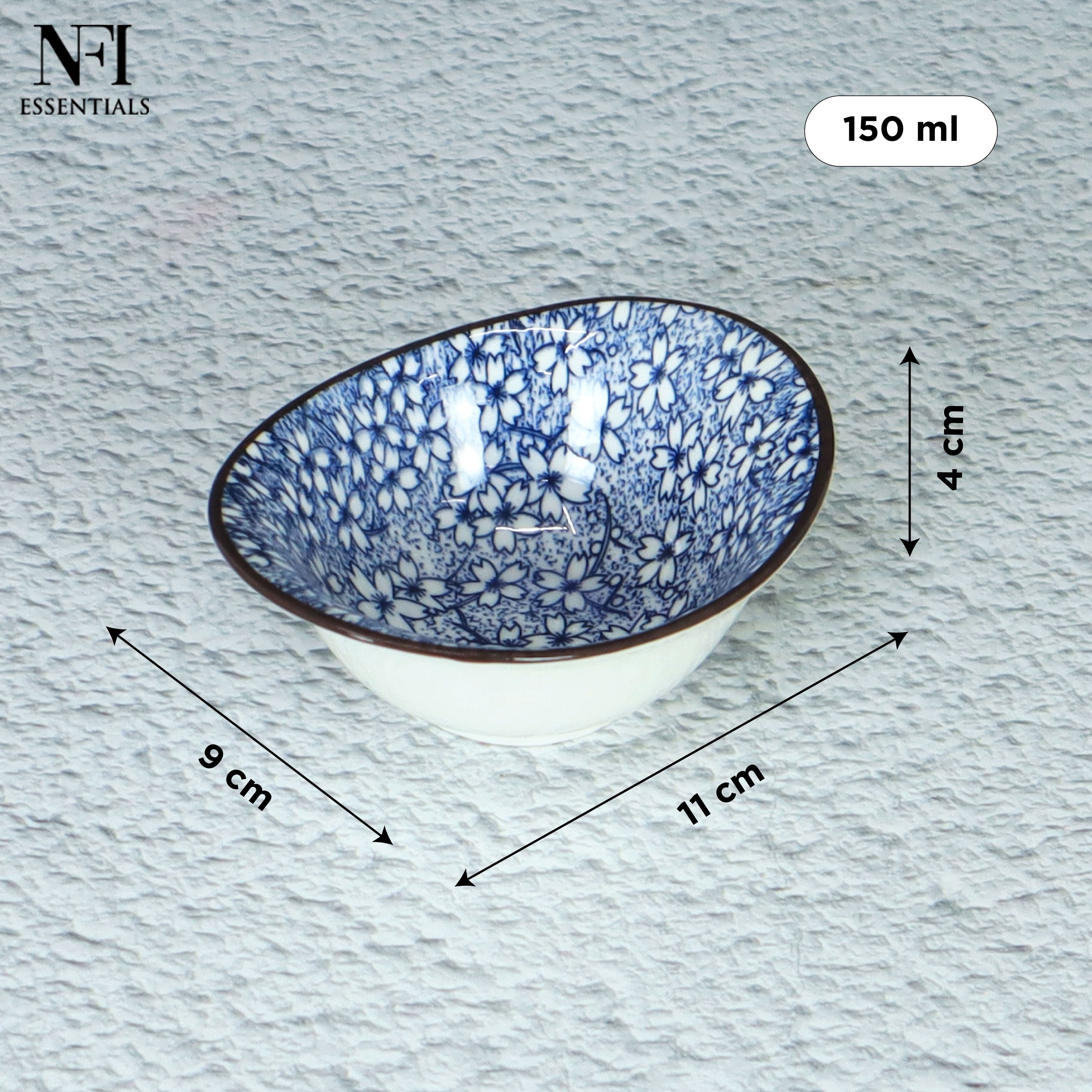NFI essentials Mini Ceramic Bowl Microwave & Dishwasher Safe Small Serving Katori Ideal for Nuts, Chutney, Pickle & Dry Fruits Blossom Design 3.5 Inch (150 ml)