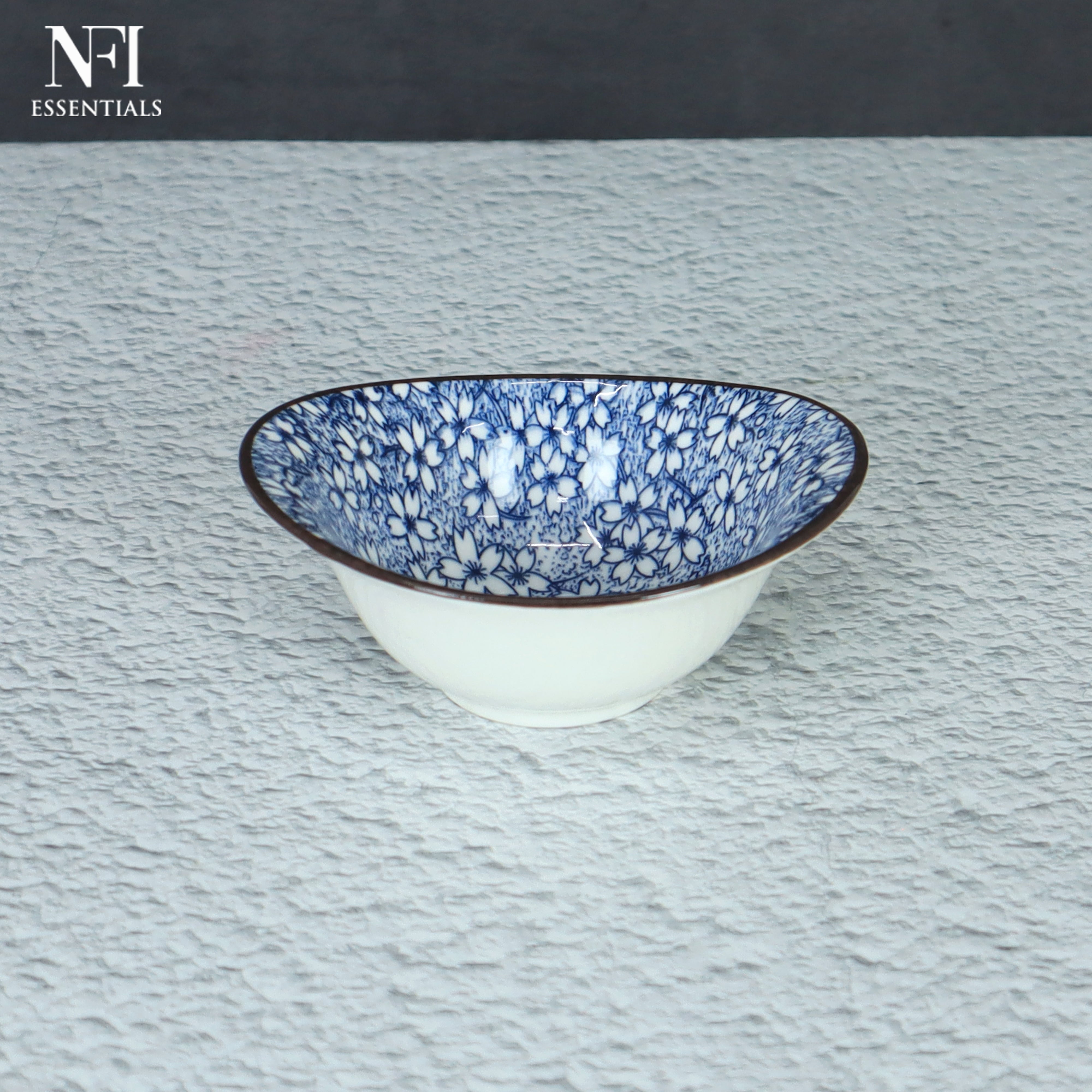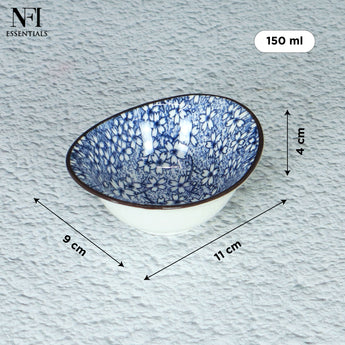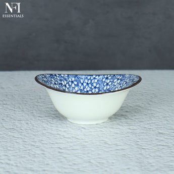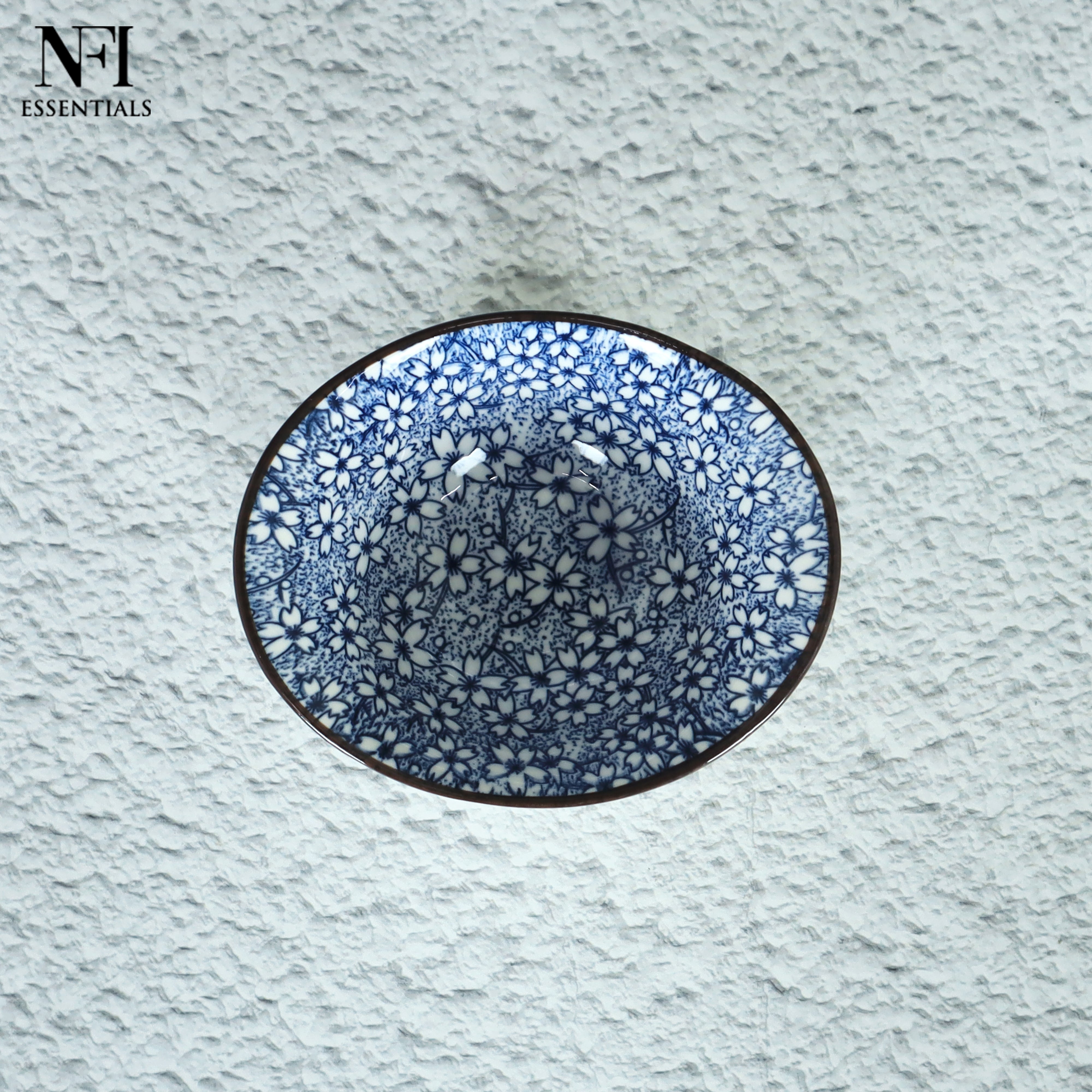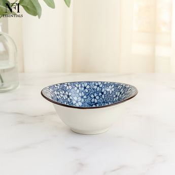 Elevate your dining and serving experience with this charming Mini Ceramic Bowl, artfully crafted with a smooth white exterior and a beautifully detailed blue floral pattern inside. The interior features an intricate Sakura Blossom Design, inspired by traditional Japanese cherry blossoms, symbolizing renewal and beauty. Each petal is carefully printed to create a serene, delicate, and timeless appeal.serving dips, chutneys, sauces, and snacks to offering nuts, dry fruits, or even small portions of ice cream and desserts. Its compact size also makes it an excellent katori for dal, curry, or side dishes during everyday meals or festive feasts. Whether you're hosting a dinner party, enjoying a casual meal, or simply serving condiments at the table, this bowl adds elegance and functionality to every occasion.
