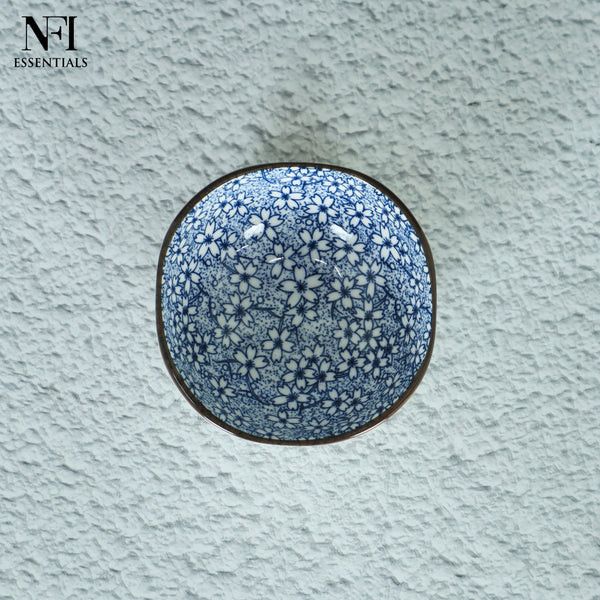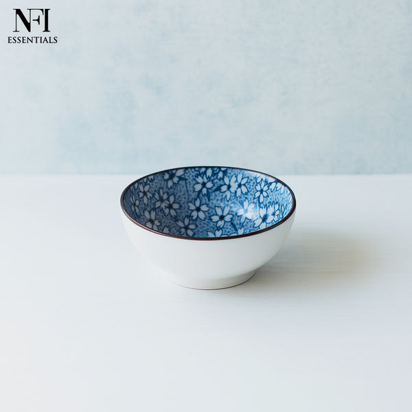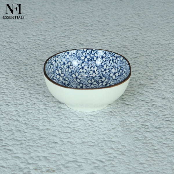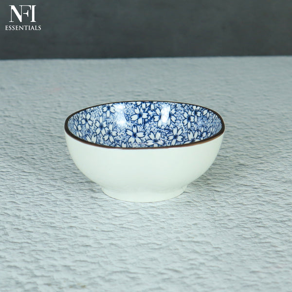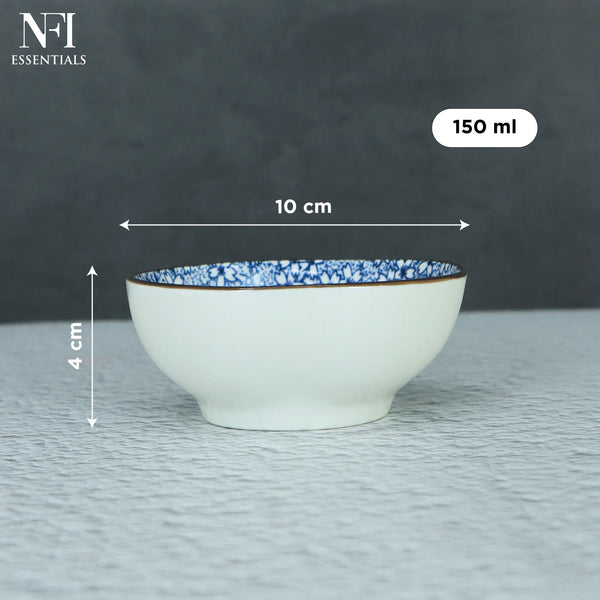 NFI essentials Mini Ceramic Bowl Microwave & Dishwasher Safe Small Serving Katori Ideal for Nuts, Chutney, Pickle & Dry Fruits, Blossom Design 4 Inch (150 ml)