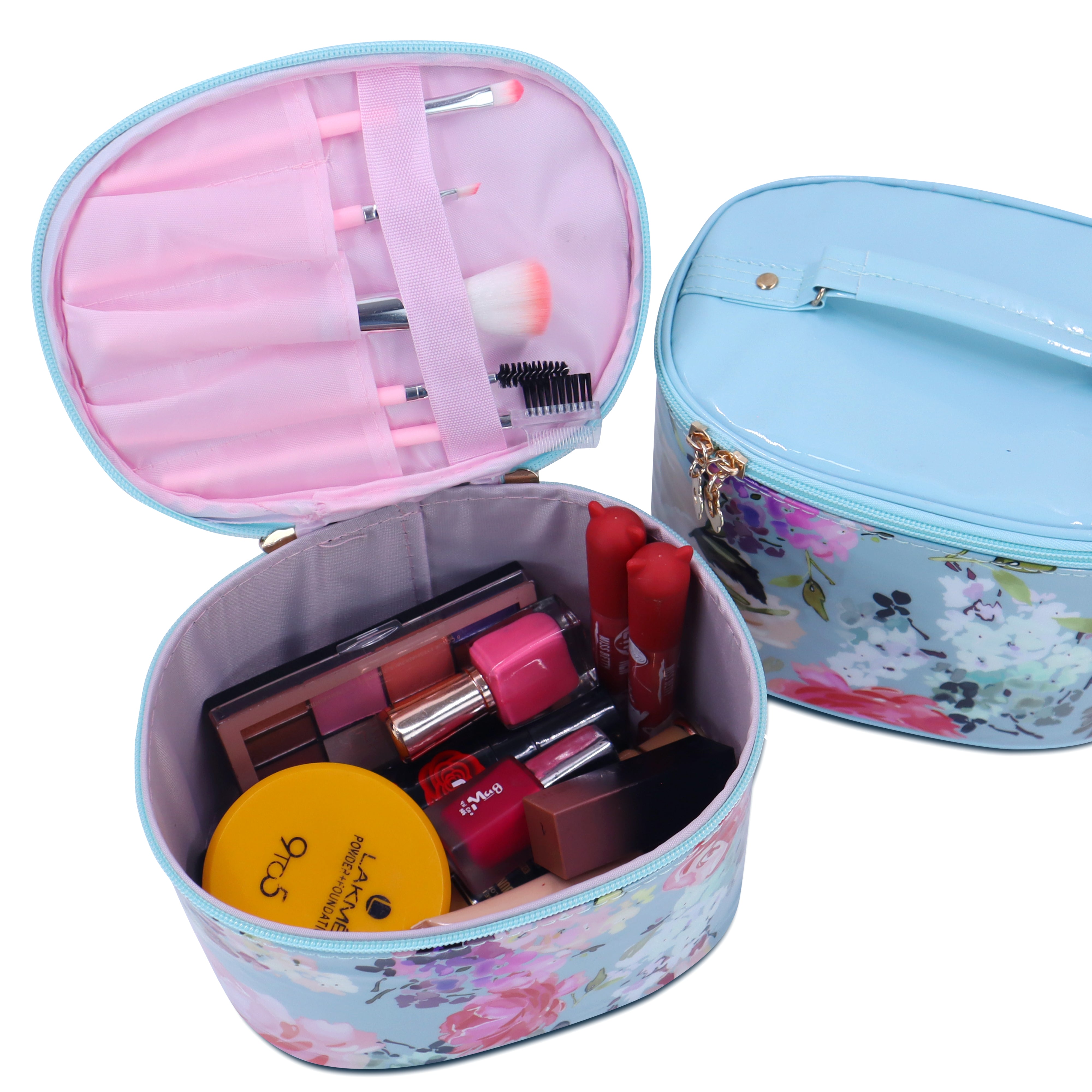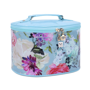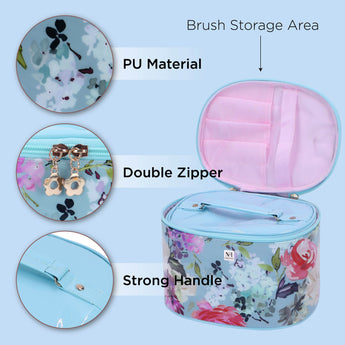 "Material: Blend of Canvas & PU ---- Lightweight, waterproof, durable, easy to clean. Feature: Floral Printed makeup case, Extra-large cosmetic bag, elegant and stylish; Double-layer deign, Zip closure, built in 4 ELASTIC STRAPS for brush organization. Multifunction: Large beauty case is the perfect way to transport, store and protect your treasured makeup and cosmetic collection. Organize your daily cosmetics, skin-care products, makeup and brushes, eye shadow, lipstick, liquids, etc. Occasion: Ideal for travel, holiday, business trip, outdoor activities, etc. it's very convenient to carry with you at any time.