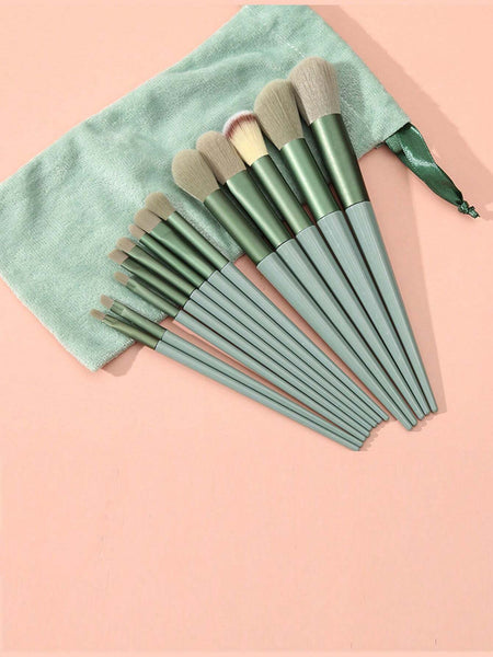 NFI essentials Professional Synthetic Soft Bristle Makeup Brush Set of 13 For Face & Eye Cosmetic Accessories Brushes Kit For Eyeshadow, Powder, Lip, Eyebrow (Green)