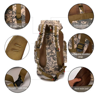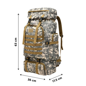 NFI essentials Hiking Bag, Military Print Travel Shoulder Backpack, Rucksack Duffle Bag with Shoe Compartment & Wet Clothes for Gym, Duffel Bag for Travelling, Camping & Trekking