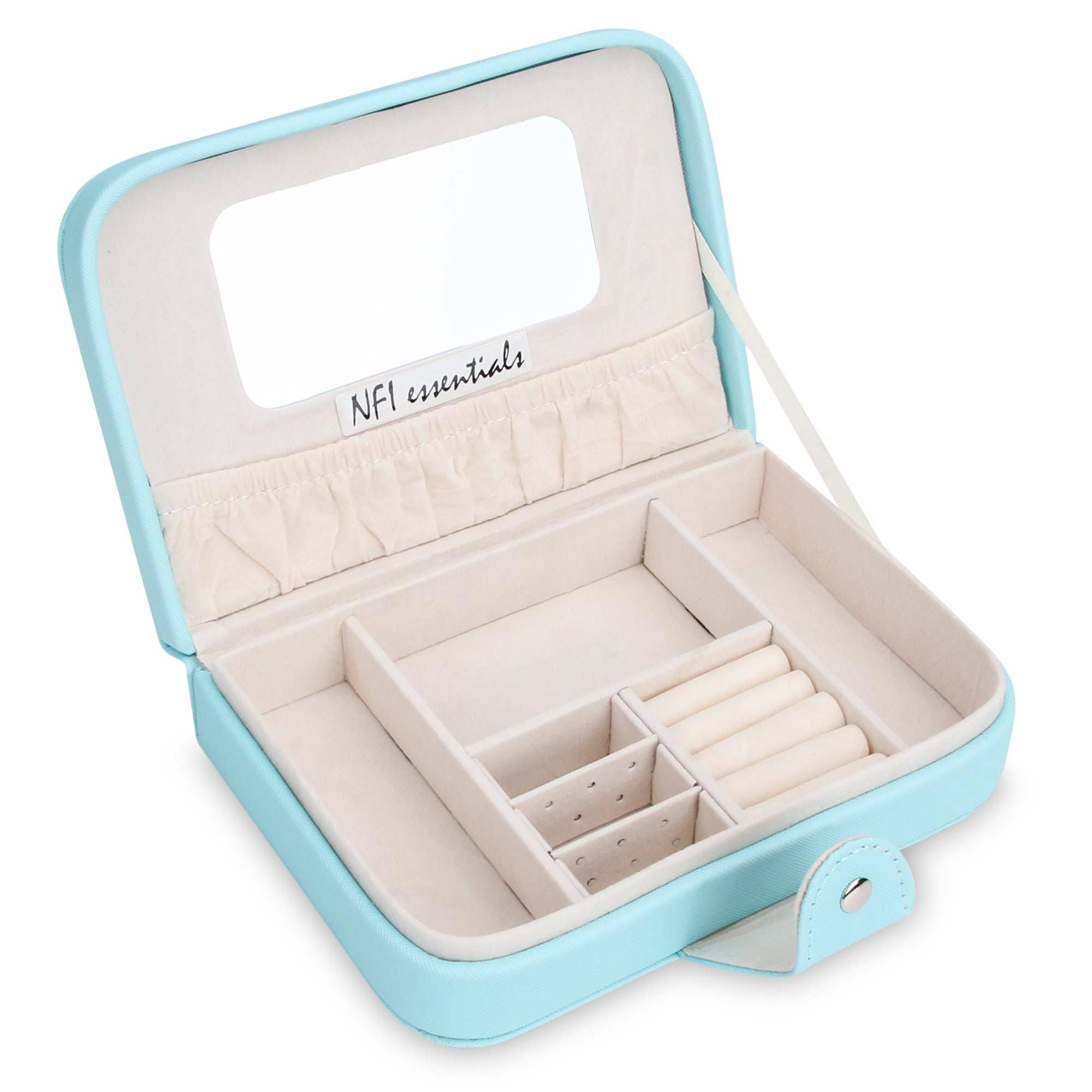 NFI essentials Portable Jewellery Organizer Box, Small Jewelry Boxes Display Storage Case with Snap button for Rings Necklace Earrings