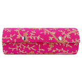 We presents completely new and handmade embroidery Bangle box with Adjustable and two Removable dividers and snap button closure. Which is perfect to store and carry your favourite Bangles, Bracelets, Jewellery, etc. systematically organized and safe and protect them from breakage. The beautiful Bangle box has Adjustable compartments to accommodate Bangles or Jewellery of different sizes and the Removable dividers make it easy to access and store your Jewellery away from dust. You can make this Bangle box as a wonderful gift for your relative, your friends and your close ones like your mother, wife, sister, friend, etc. You can gift her this stunning bangle box on Mother's Day, Anniversary, Raksha Bandhan, Birthday, Weddings, etc.