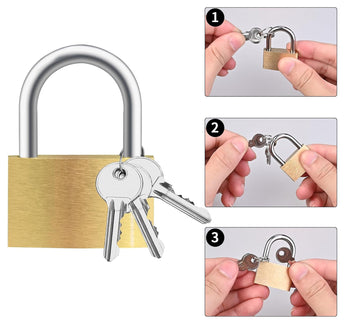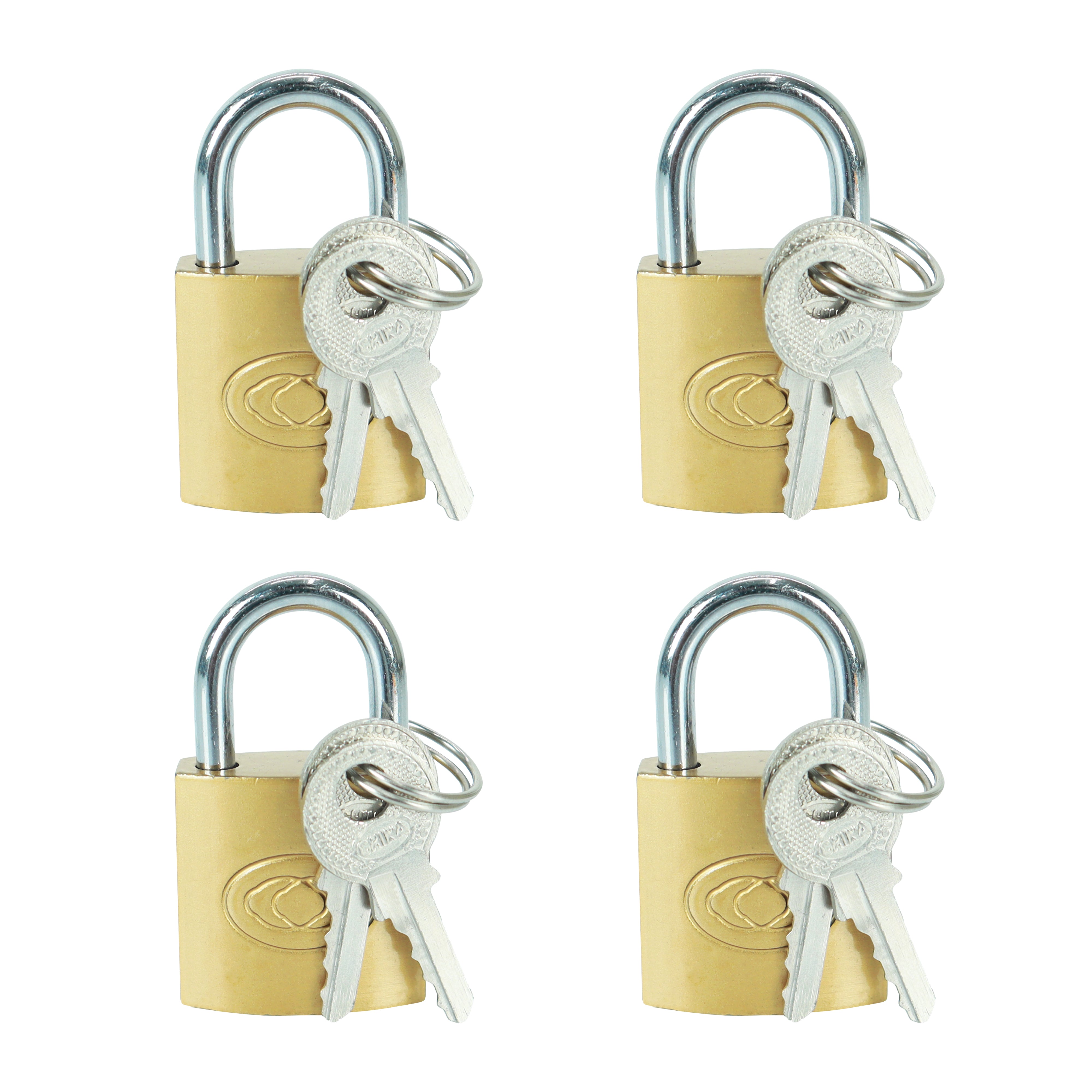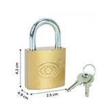 It consist of 4 Small Brass Polished Lock and Key colorful and durable Padlocks for securing luggage while travelling. Each lock comes with UNIQUE 2 Keys. Solid Brass internal Construction with chrome plating for corrosion resistance., Specially Treated Hardened Steel Shackle. No Spring or Loaded Parts., Ideal for securing your travel packs, bags, strolley bags and other luggage., Size: 4 x 2.3 cm locks with 20mm Shackle;
