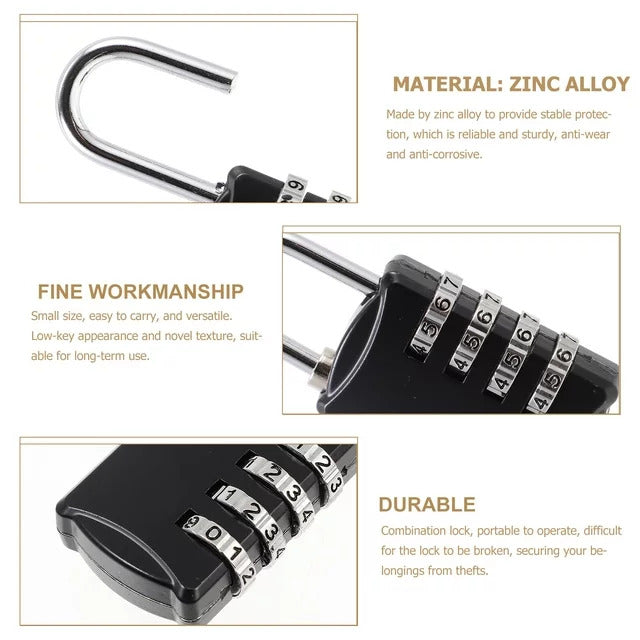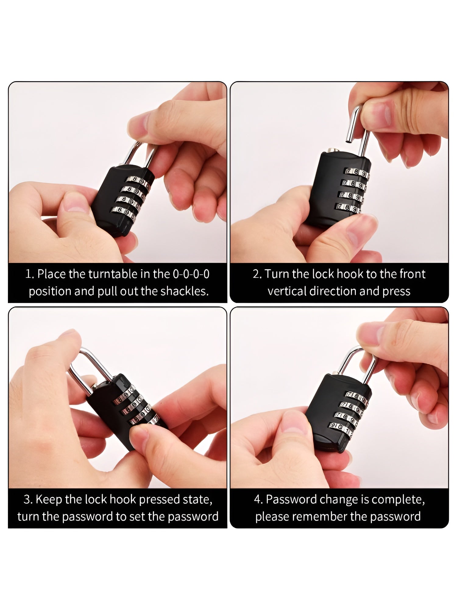 Designed for indoor and outdoor, our combination small weatherproof padlock with hardened steel shackle is suitable for school gym locker, sports locker, fence, hard cases, travel bags, suitcases, backpacks, outdoor tent, lugguages and other items you need to keep safe. Set your own four-digit combination lock with hardened steel shackle to prevent cutting.Take control of your security with our gym padlock's easy-to-use code setting feature. Simply choose your desired combination and enjoy personalized access, all while maintaining the highest level of protection for your valuable items. Enjoy the convenience and security of our 4 digit combination code lock. Our combination combo padlock locks offer hassle-free access. With its user-friendly design, you can quickly and easily enter your personalized code, ensuring convenient and efficient entry to your lockers, gates, or gym equipment. Simplify your security with set your own combination luggage locks for suitcases/backpack/tent/bag/hard cases.