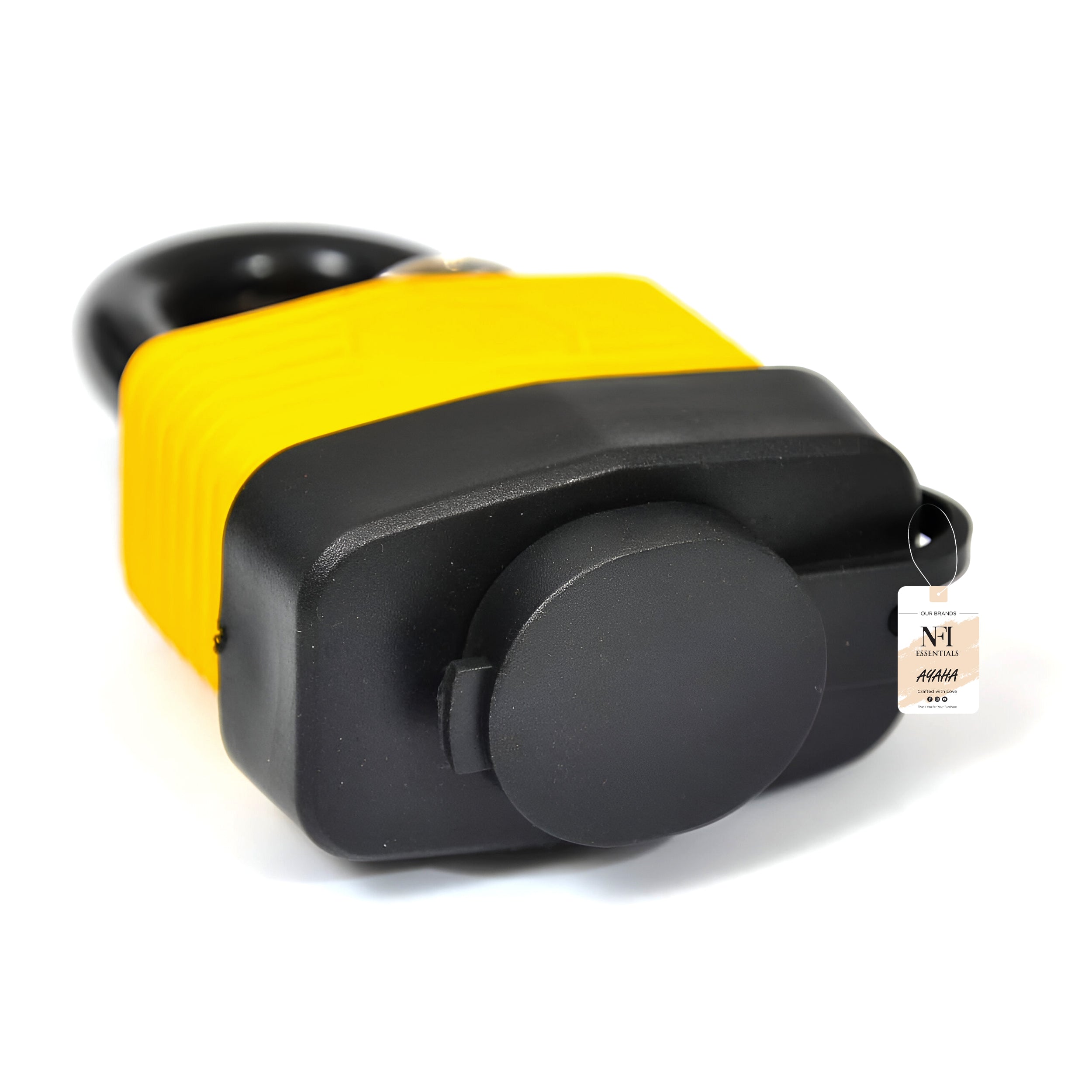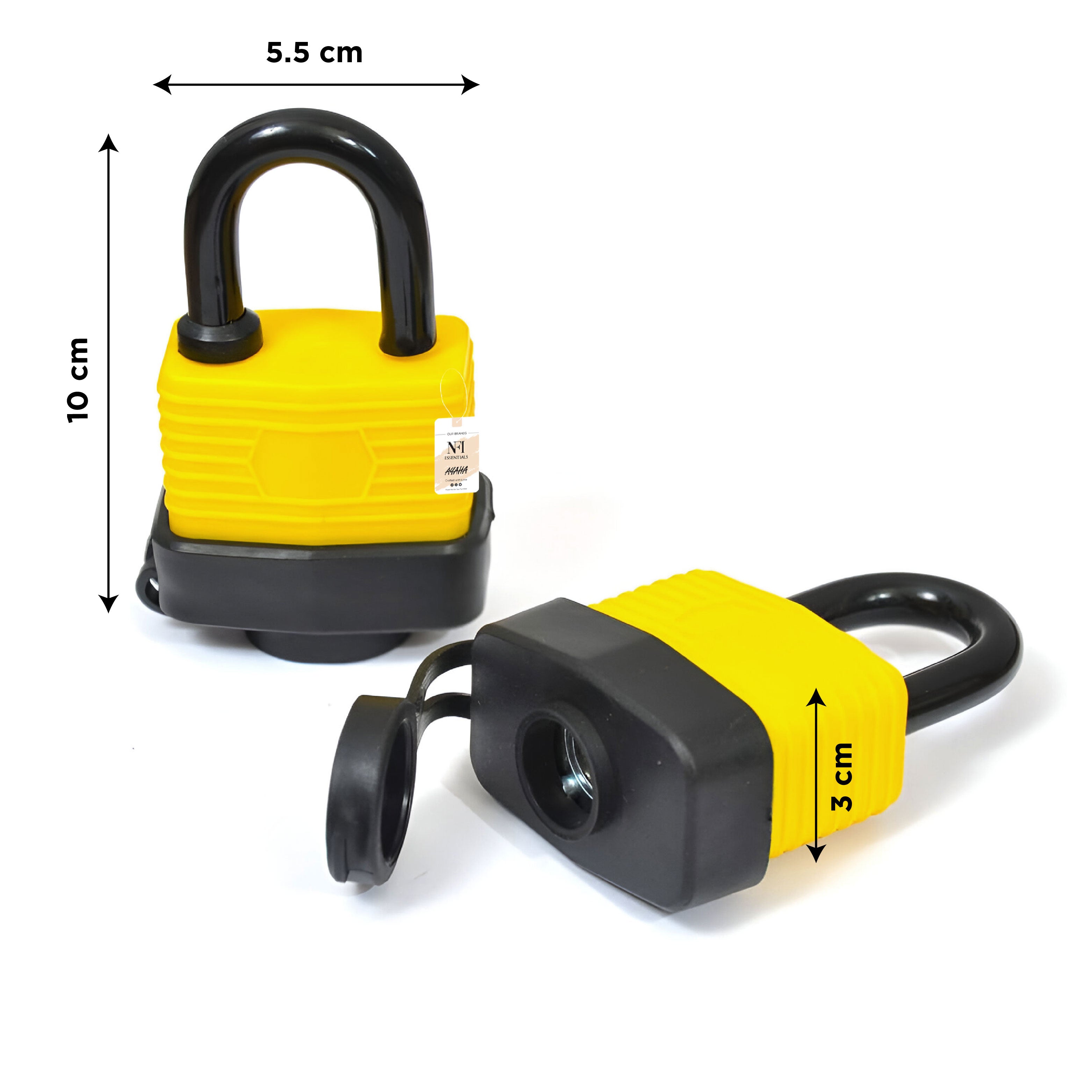 NFI essentials Long Shackle Heavy Duty Covered Laminated Steel Keyed Padlocks Dustproof & Waterproof 1 Pc &3 Keys with Protector Steel for Gym Locker Luggage Locks